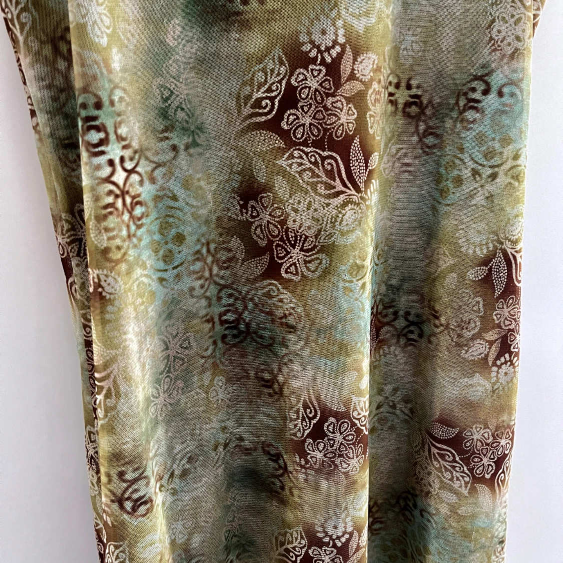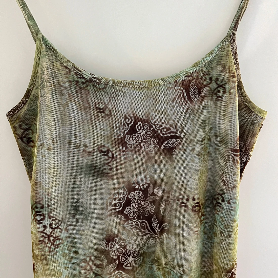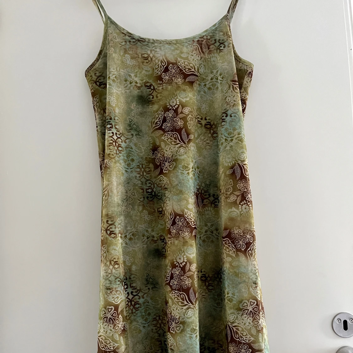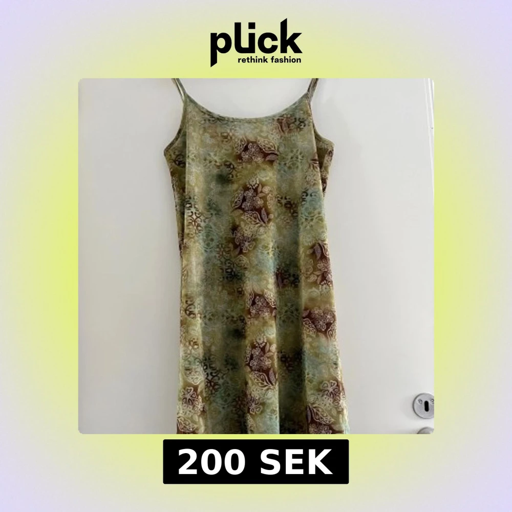 Söt sommarklänning i blommigt mönster, grön/brun. Mycket fint skick. Djur- och rökfritt hem.