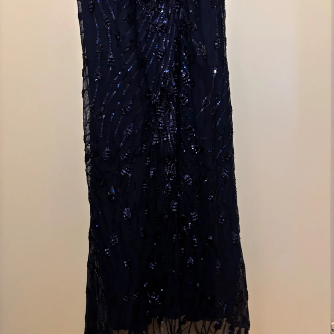 Marinblå långklänning med paljetter