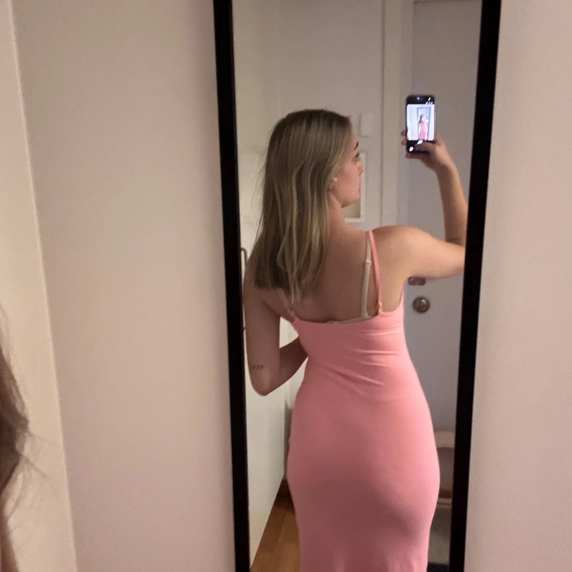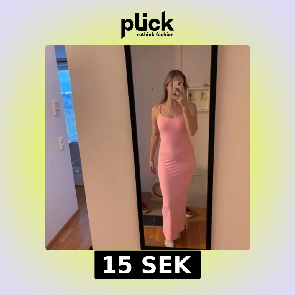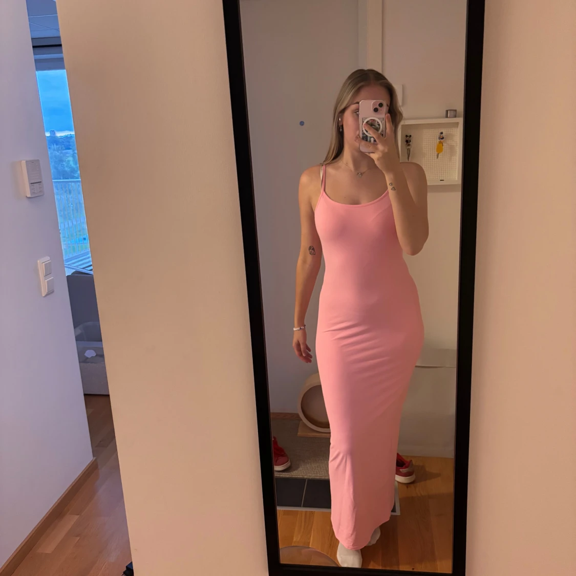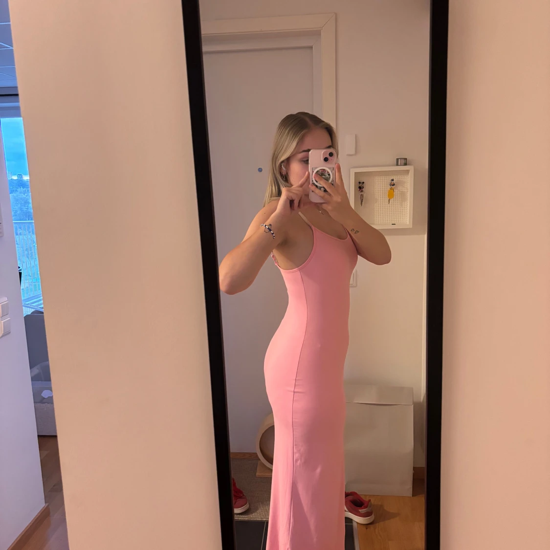 Enkel och snygg rosa långklänning med smala axelband och rak passform. Klänningen är ärmlös och har en mjuk, stretchig känsla som gör den superbekväm. Annonsen finns på flera ställen så skriv till mig innan ni trycker på köp🫶🏻