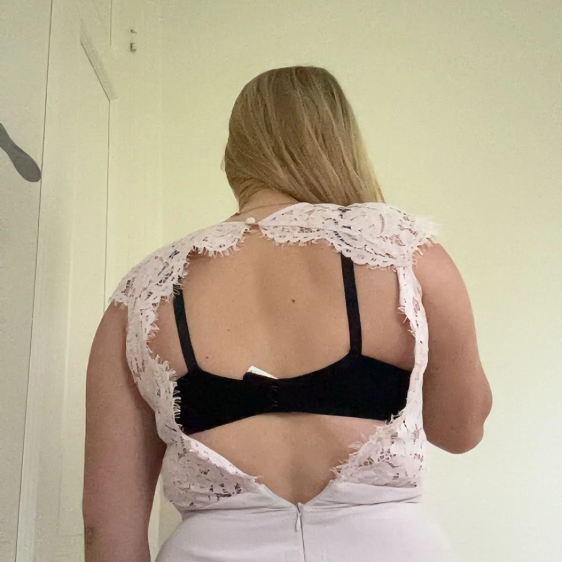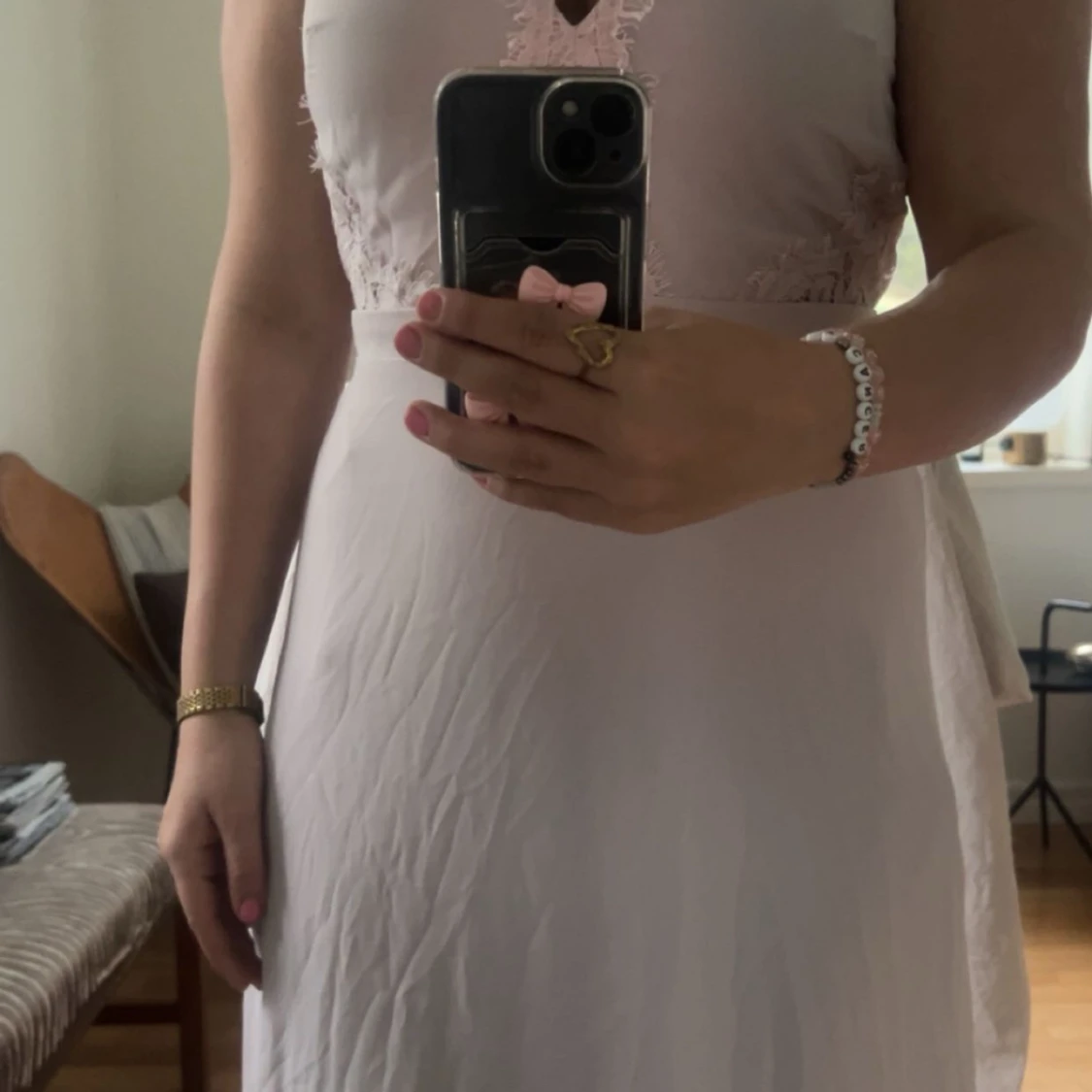 Ljusrosa långklänning med spetsdetaljer