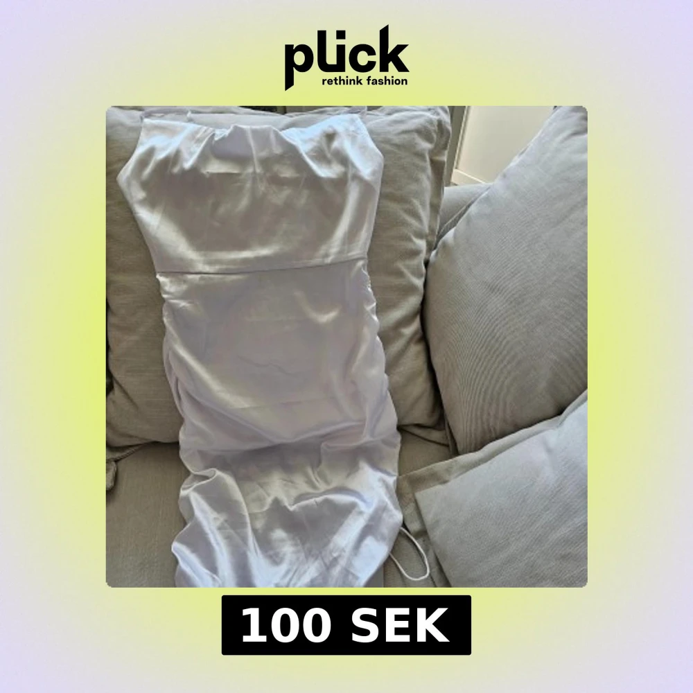En elegant vit klänning med smala axelband och en åtsittande passform. Klänningen har en rynkad detalj på sidorna, och kan vara väldigt kort eller midi. Den är ganska glansigt. Har också dragkedjan på vänster sida( 42 cm), så praktiskt och lätt att ta på / ta av sig. Jättebra sikt men det finns liten slitning på baksidan, som inte märks, bara när man noggrant inspektera tyget. Kolla den sista bilden( 3 cm) , har zoomat för att det ska synas.