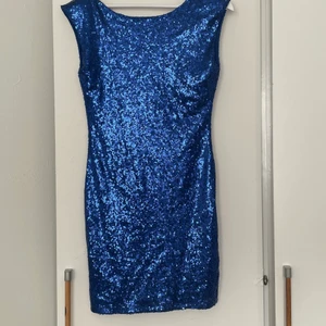 En mörkblå paljettklänning! Urringad på ryggen. Bra skick!
