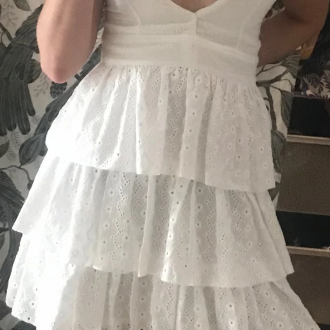 Jätte gullig vit klänning med bra kvalitet nästan helt oanvänd för använder inte klänningar.