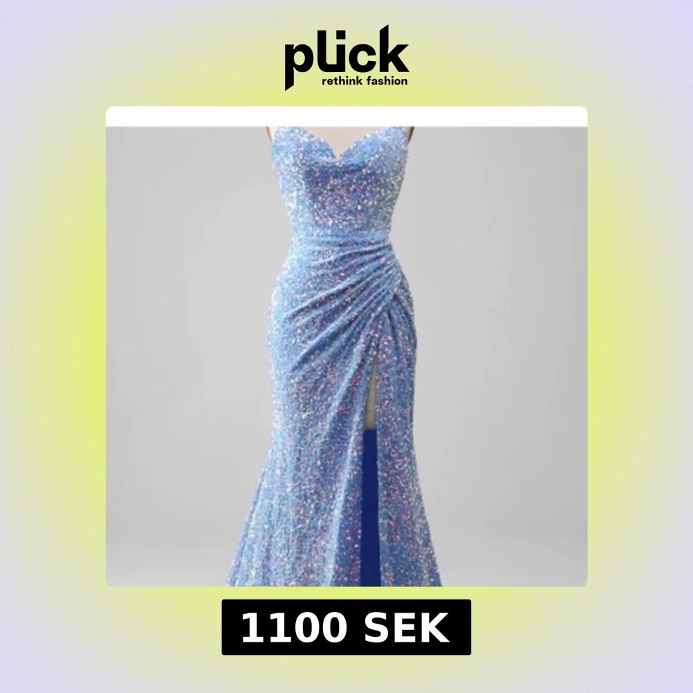 Blå glittrig långklänning med slits