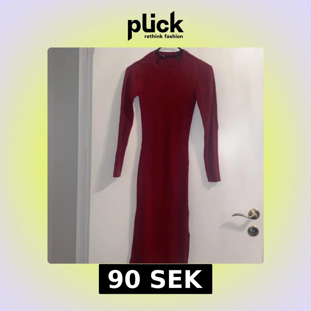 Snygg röd ribbad långklänning med långärmad design. Perfekt för kyligare dagar med sin stilrena och figurnära passform.
