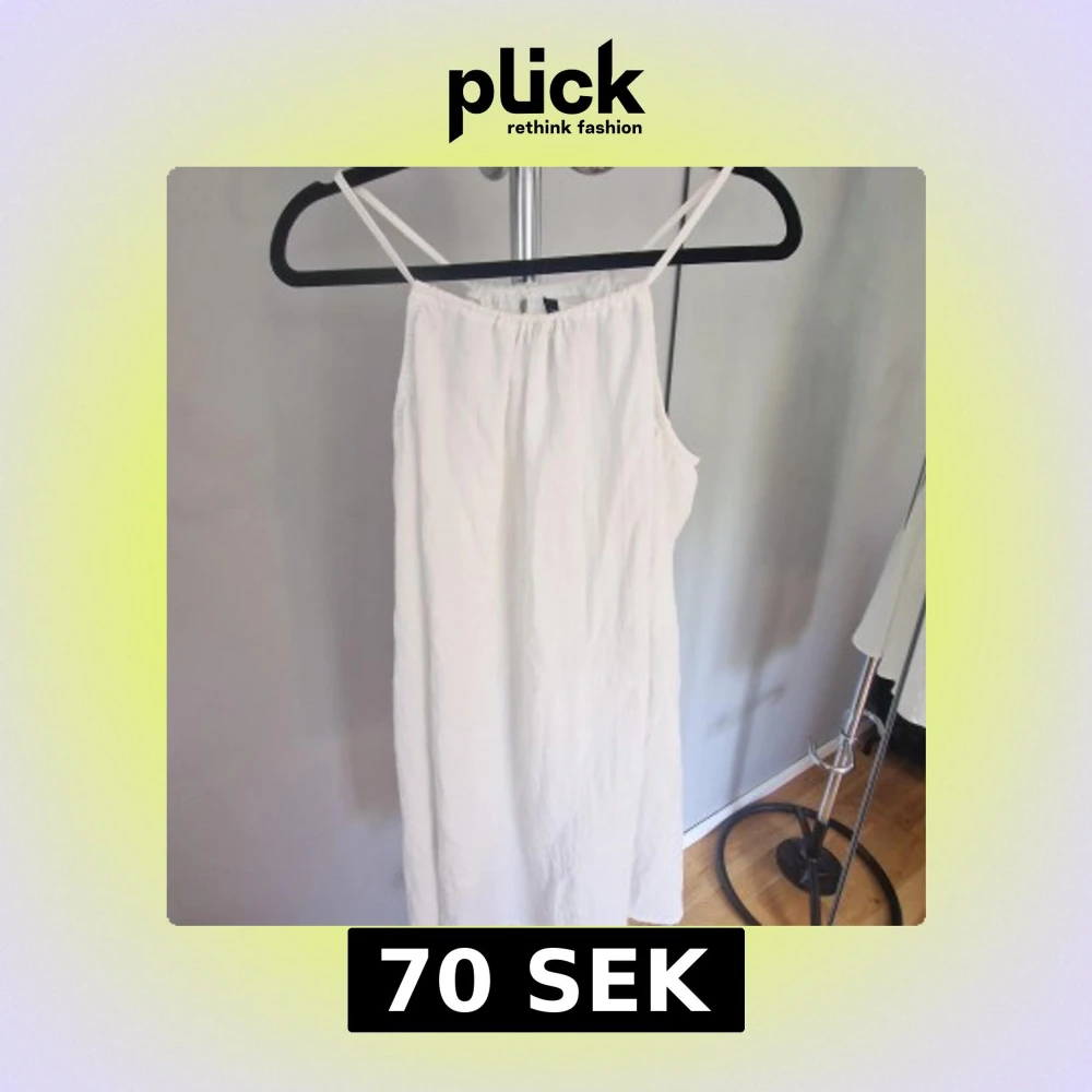 Säljer en enkel och stilren vit klänning från Divided med smala axelband och rak passform. Klänningen är ärmlös och har en lätt och luftig känsla, perfekt för varma dagar. Snygg att styla med sandaler eller sneakers.