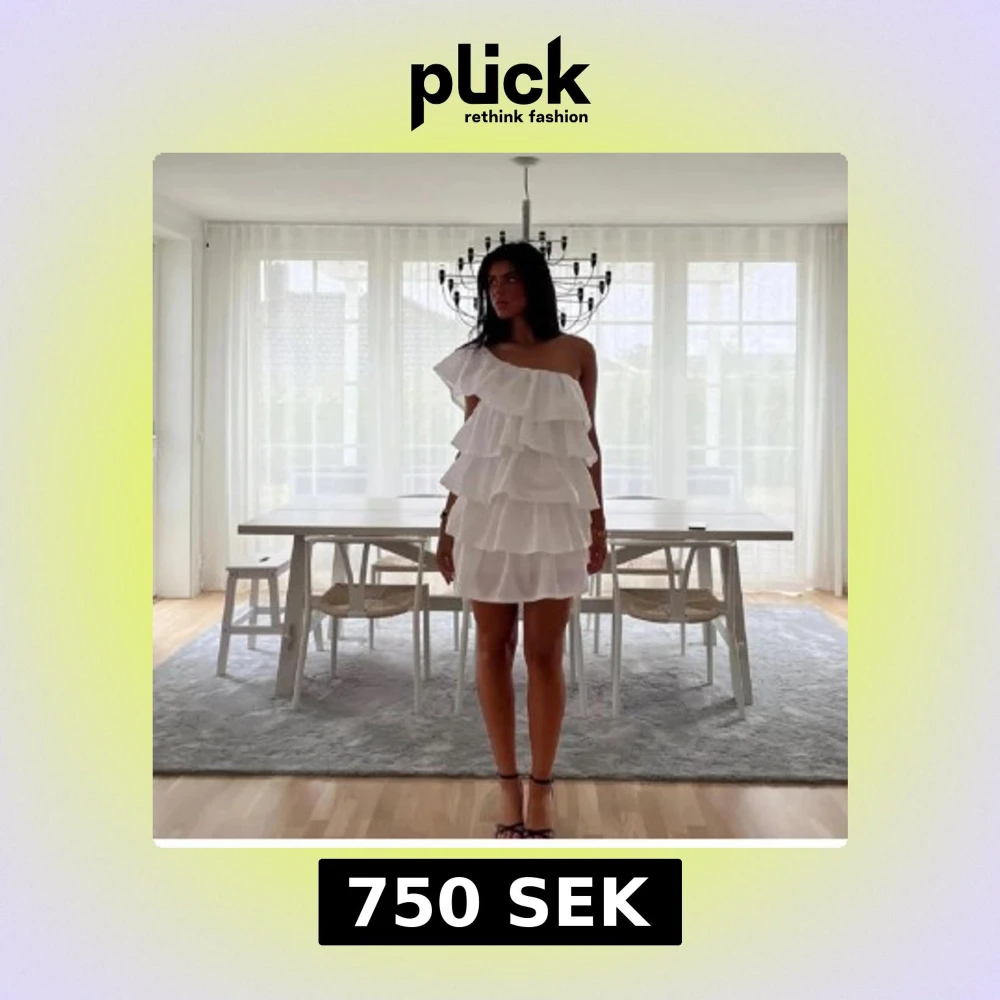 Jättefin kort vit klänning perfekt till studenten eller till sommaren! Den sitter bra som S men skulle funka på Xs också. En vit fin färg perfekt för sommaren.