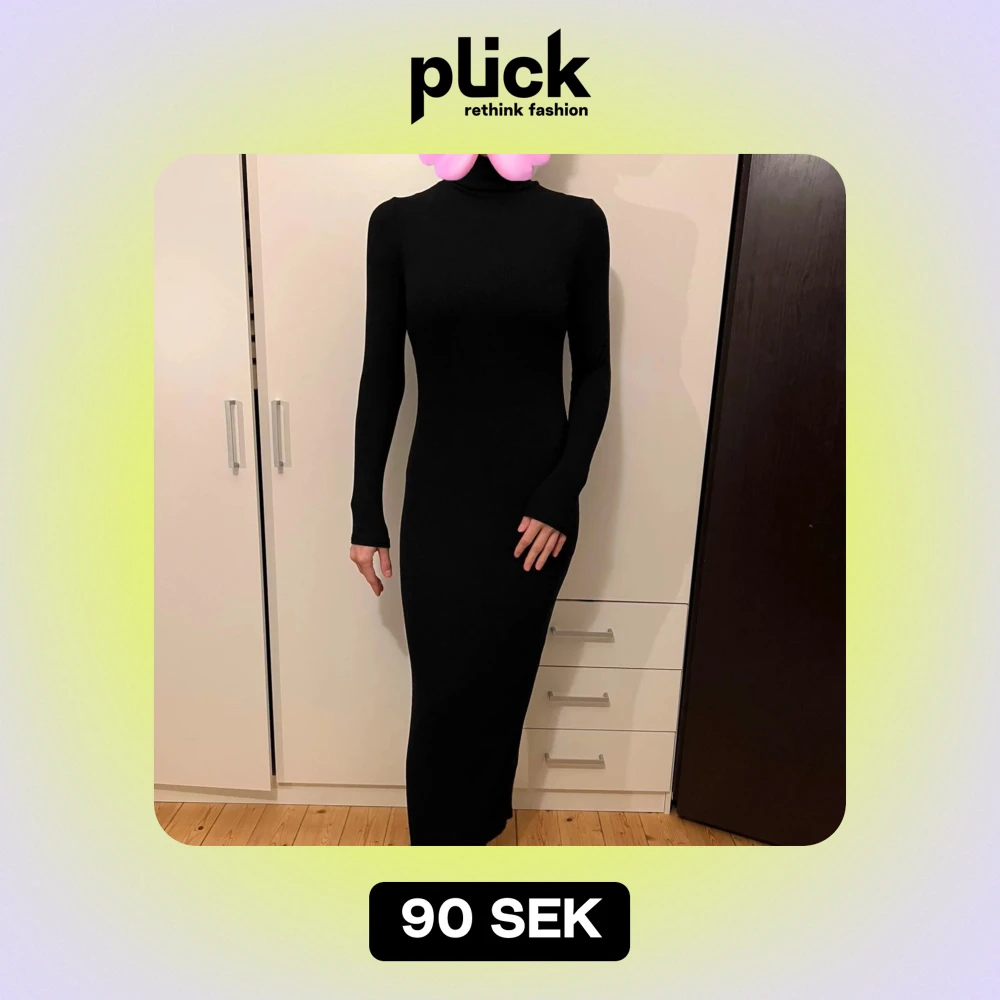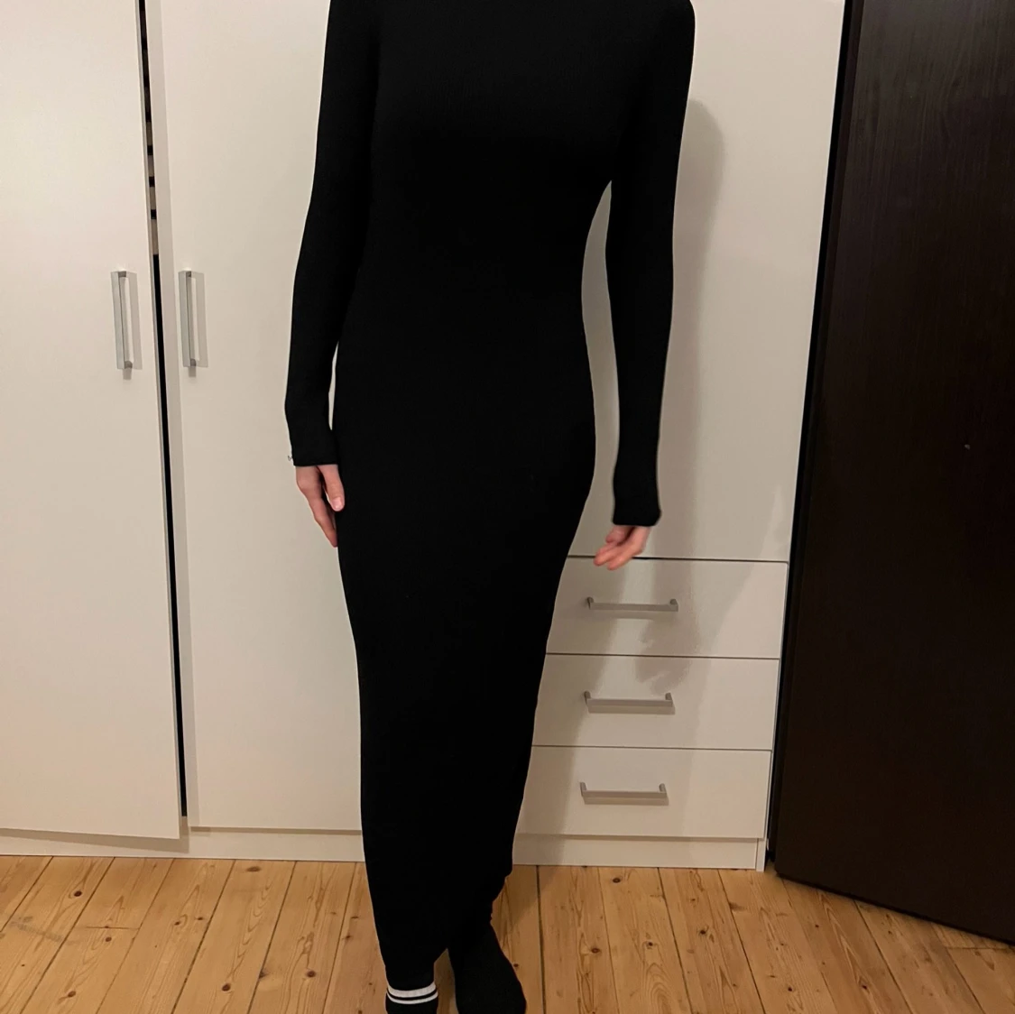 Snygg svart långklänning med polokrage och långärmad design. Perfekt för höst och vinter, den är både elegant och bekväm. Klänningen har en tight passform som framhäver figuren. Perfekt för både vardag och festliga tillfällen!