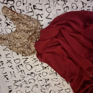 Balklänning  - Säljer min balklänning i marinblå som är glansig och har en glittrig detalj vid sidan om och med slits, den har en typ av korsett så att man kan justera hur man vill att den ska sitta på.  Orginal pris 600.