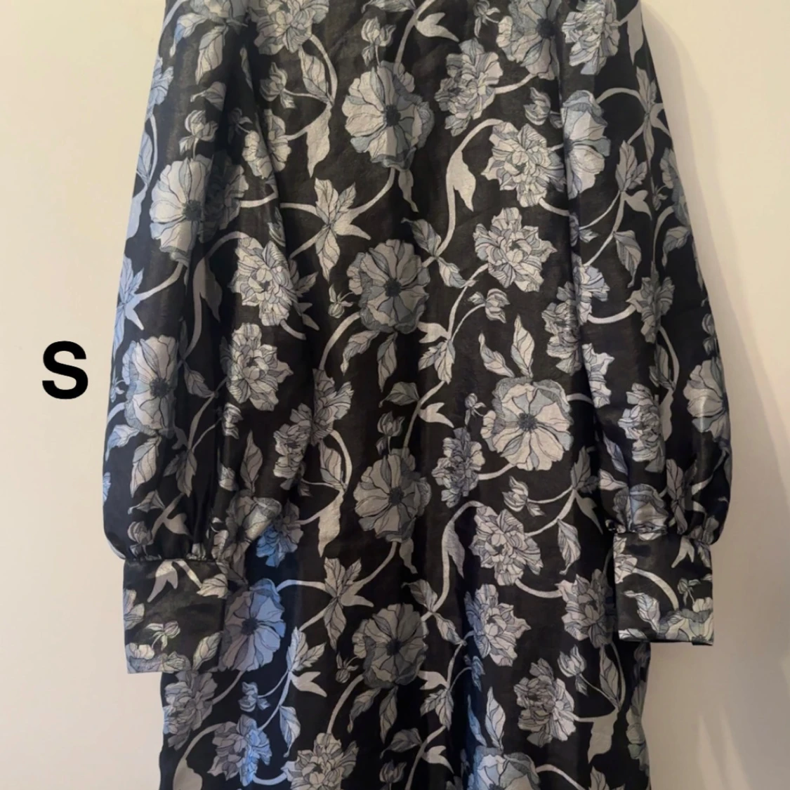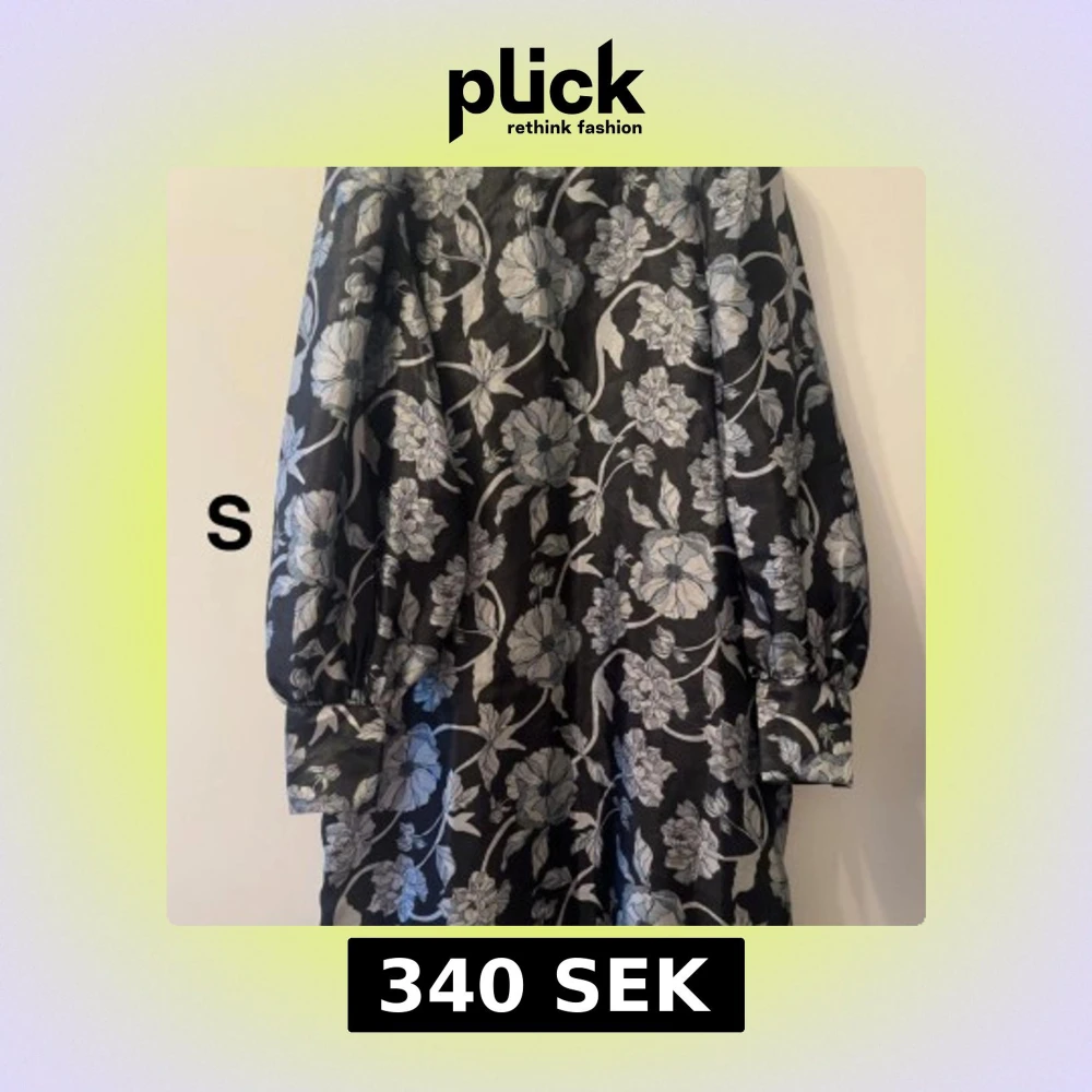 Supersnygg svart klänning med stora grå blommor och puffiga långärmar. Klänningen har breda manschetter och ett elegant blommönster som verkligen sticker ut. Perfekt för dig som vill ha något unikt och trendigt!🌸