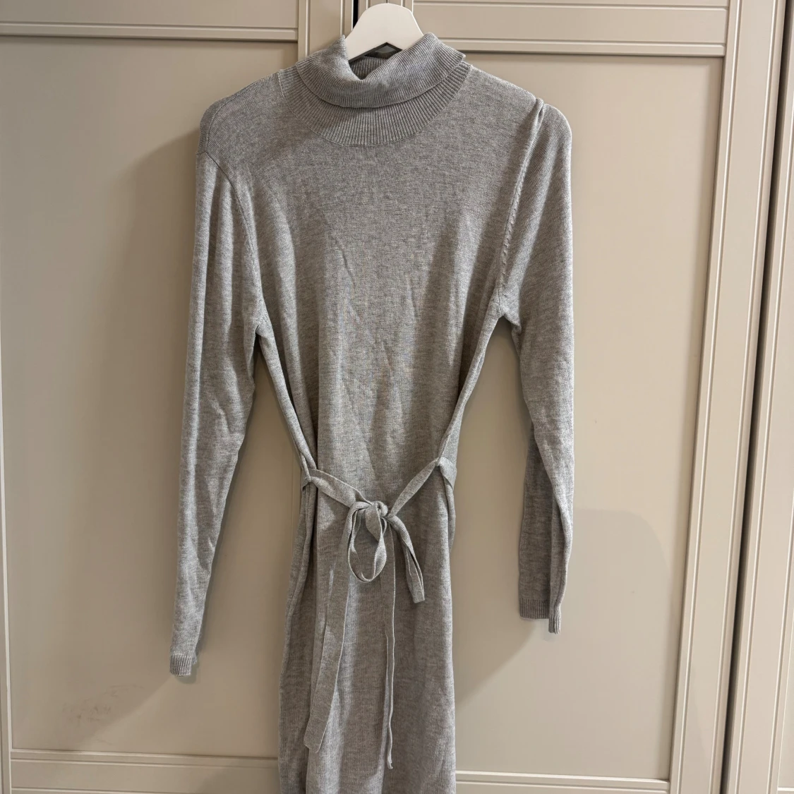 Mysig grå stickad klänning från C med polokrage och knytskärp i midjan. Långärmad och i mjukt material som ger en chill och stilren vibe. Perfekt för lager-på-lager och enkel att styla med boots eller sneakers. * Fint skick - endast prövad * Skickar samma dag eller dagen efter * Rökfritt hem * Passa på att kolla mina andra annonser, du får mängdrabatt och jag tackar ja till rimliga bud * 🤍