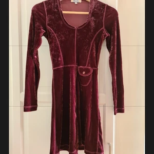 Klänning köpt i Paris i en liten boutiq. Fantastiskt mjuk och upplevs vara lite stretchig i materialet som är lik sammet. Fått många komplimanger när jag burit den. Sparsamt använd. Strl 36. Köparen står för frakt, spårbart.