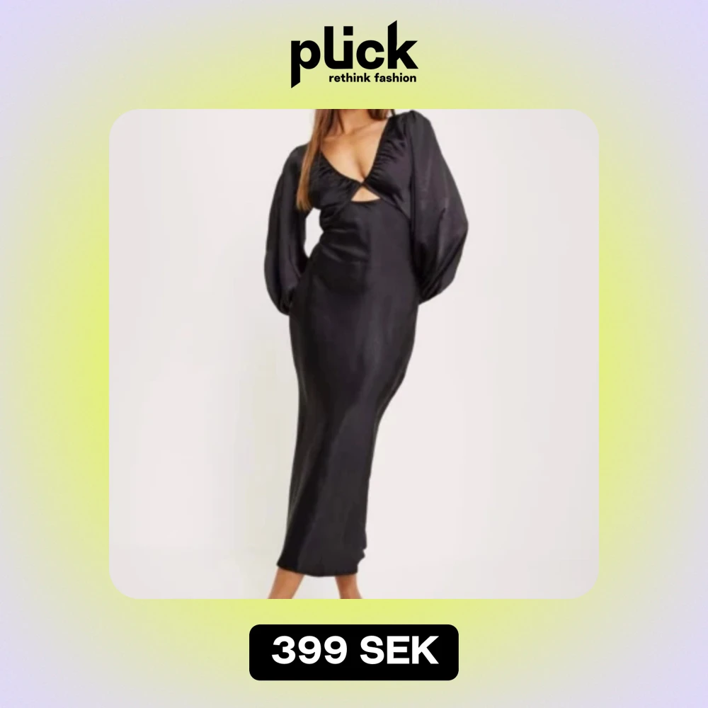 Klänning från Kiss The Sky i satin Midilängd Öppen rygg med snörning Resår vid ärmsluten