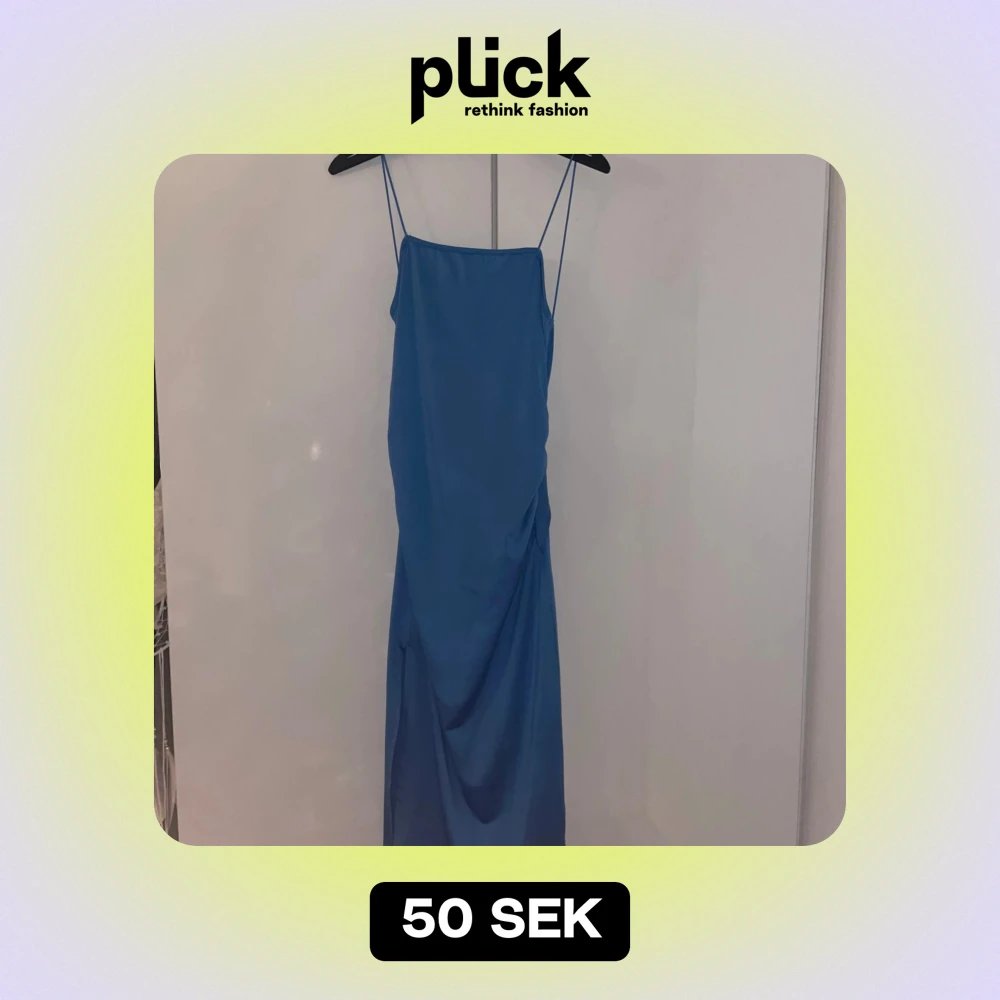 En elegant sexig blå långklänning med smala axelband och en vacker öppen rygg. Klänningen har en draperad detalj på sidan som ger en fin form🥰 perfekt för resor och fester!