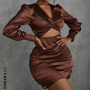 Brun klänning  - Säljer min super snygga bruna klänning som endast är använd en kväll, den är i storlek 36. Vid mer info meddela mig🥰