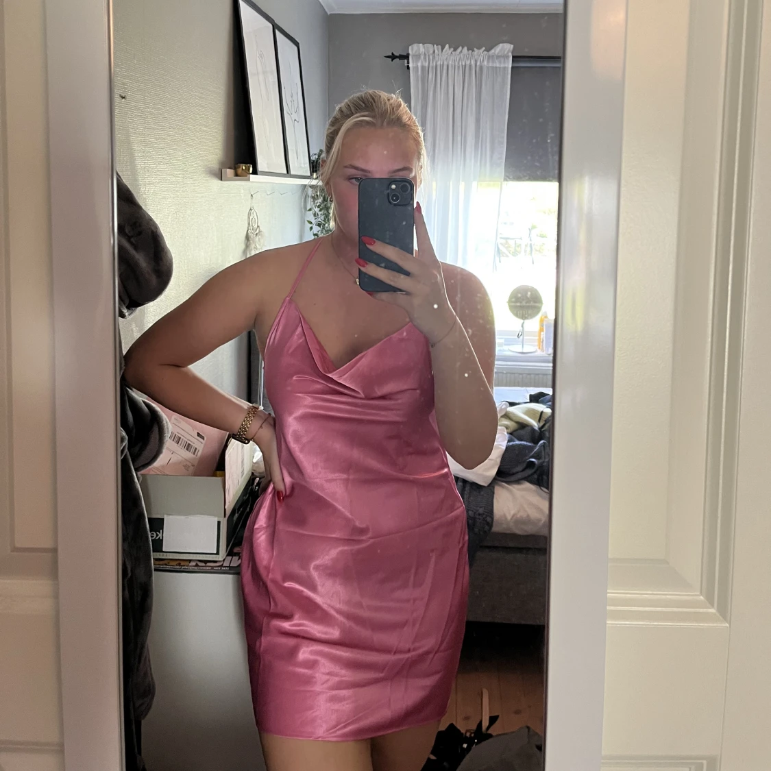 Sidenklänning från HM i rosa. Öppen rygg. Aldrig använd