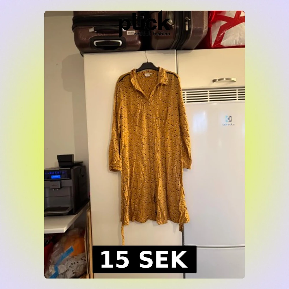 Senapsgul skjortklänning från Cream i storlek 38. Klänningen har leopardmönster i svart och ljusrosa, knappar framtill, krage och långa ärmar. Tillhörande bälte i midjan för extra passform. Perfekt för dig som gillar djurmönster och vill sticka ut. Storlek 38/M. Mer använd men fortfarande fint skick.