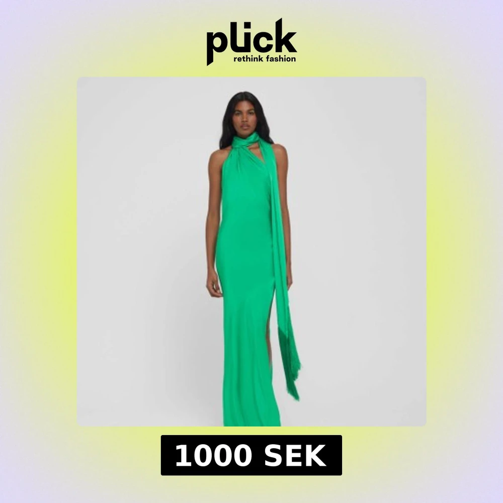 Gul långklänning i satin - Elegant gul långklänning i satin med  v-ringning fram och öppen rygg med twistad detalj. Aldrig använd, säljer pga för liten, betalade 1600 för den nypris pga dyr frakt