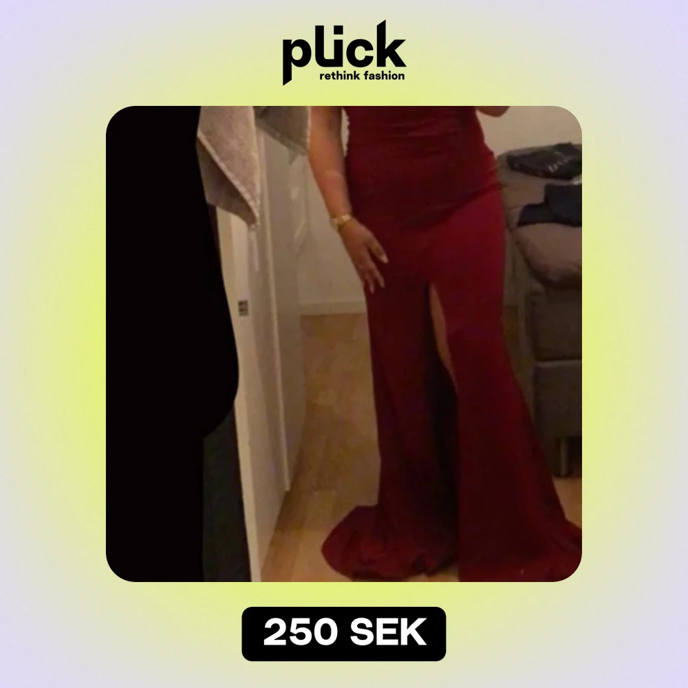 Säljer denna vinröda balklänning. Det är en mindre Medium i storlek