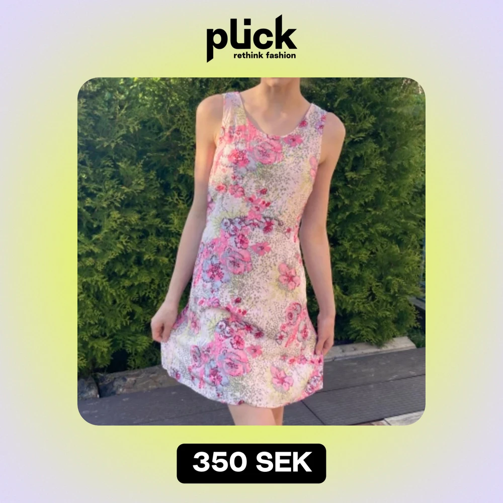 Så söt blommig klänning som är perfekt nu till sommaren! Jättefina detaljer och små glansiga pärlor insydda runt blommorna! V-ringad rygg. Snören kan man knyta i ryggen eller längst fram beroende på vad man föredrar! 🌸💗