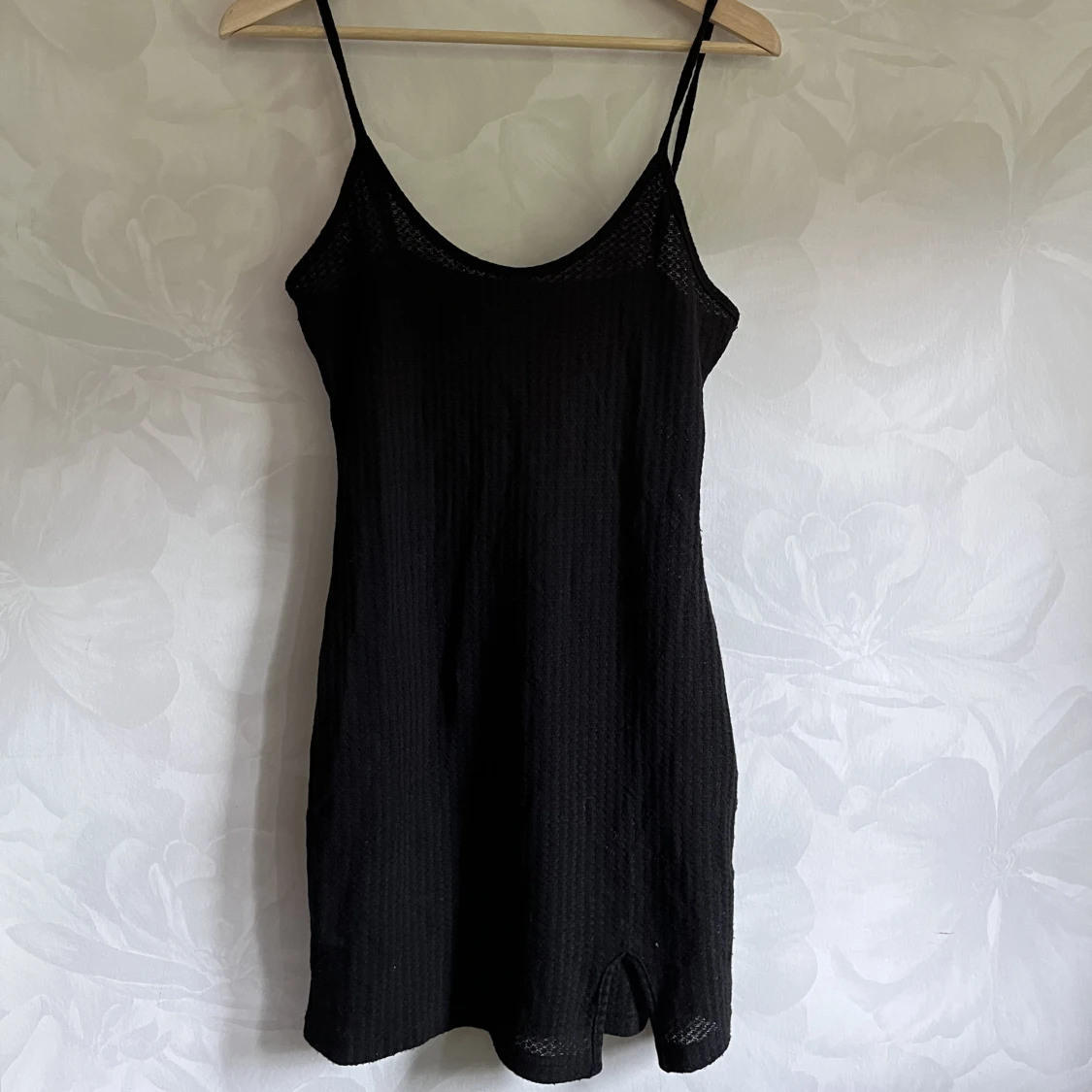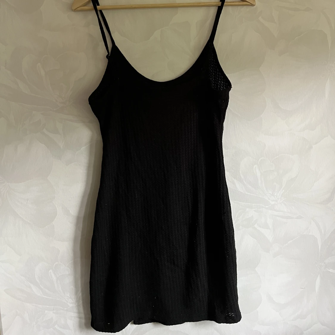 Svart klänning med tunt tyg, ganska genomskinlig. Använd gärna köp nu!