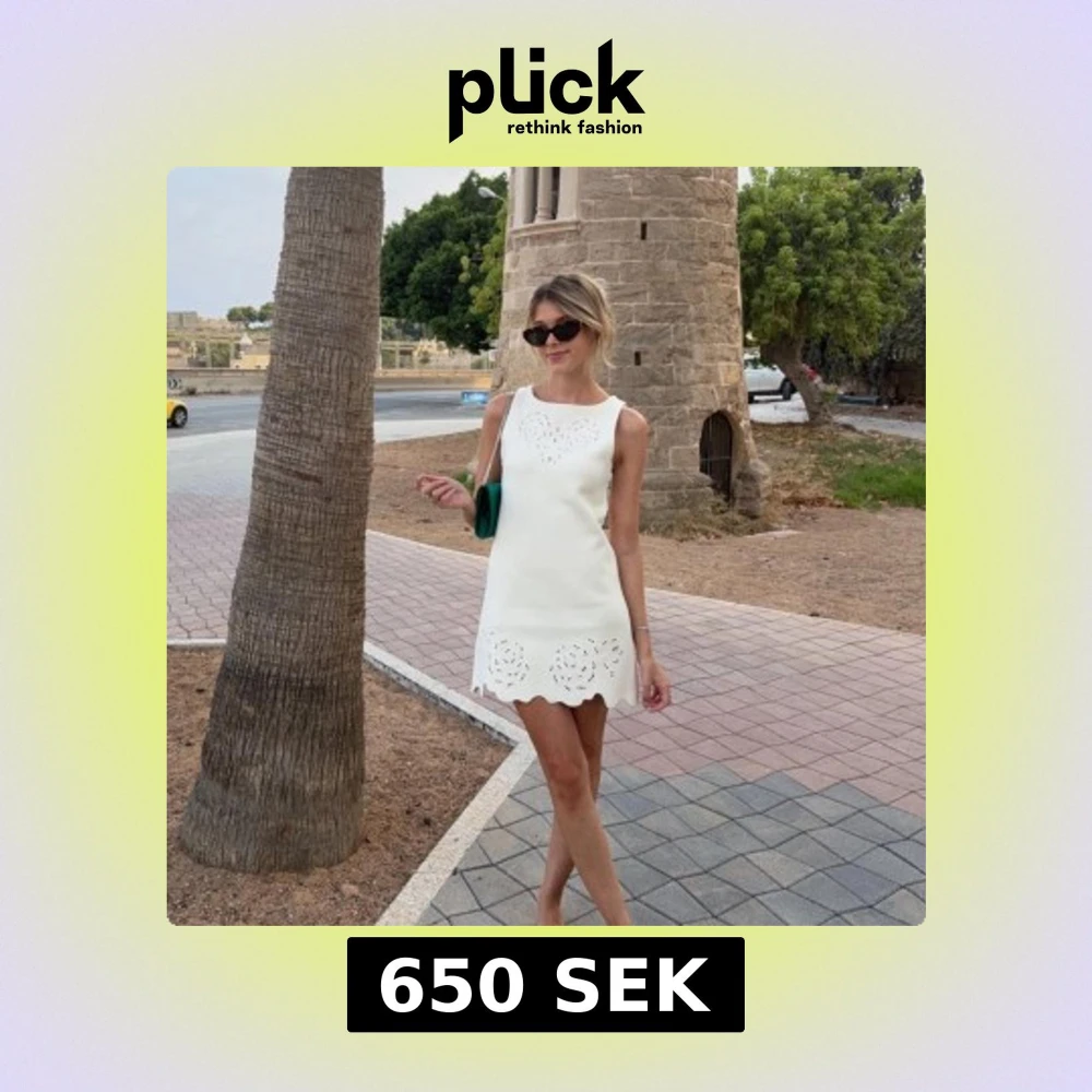 Supersöt vit kort klänning från Mango med ärmlös design och broderade blommor i hålmönster på bröstet och nederkanten. Klänningen har en rak passform och vågig kant nedtill, perfekt för studenten. Materialet känns mjukt och lätt. Storleken är M men passar även S. Helt ny (nypris 899kr)