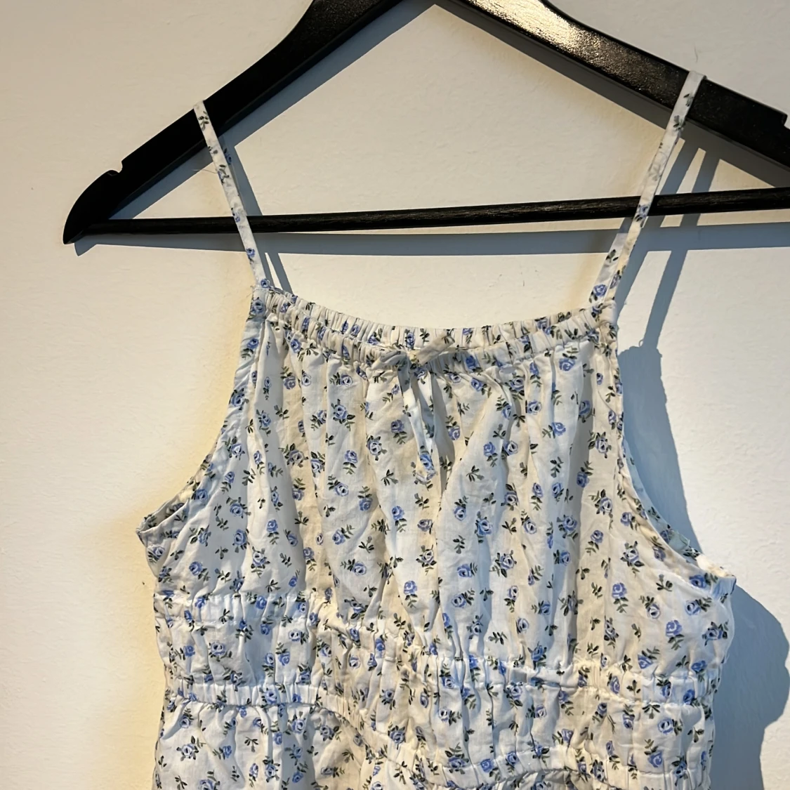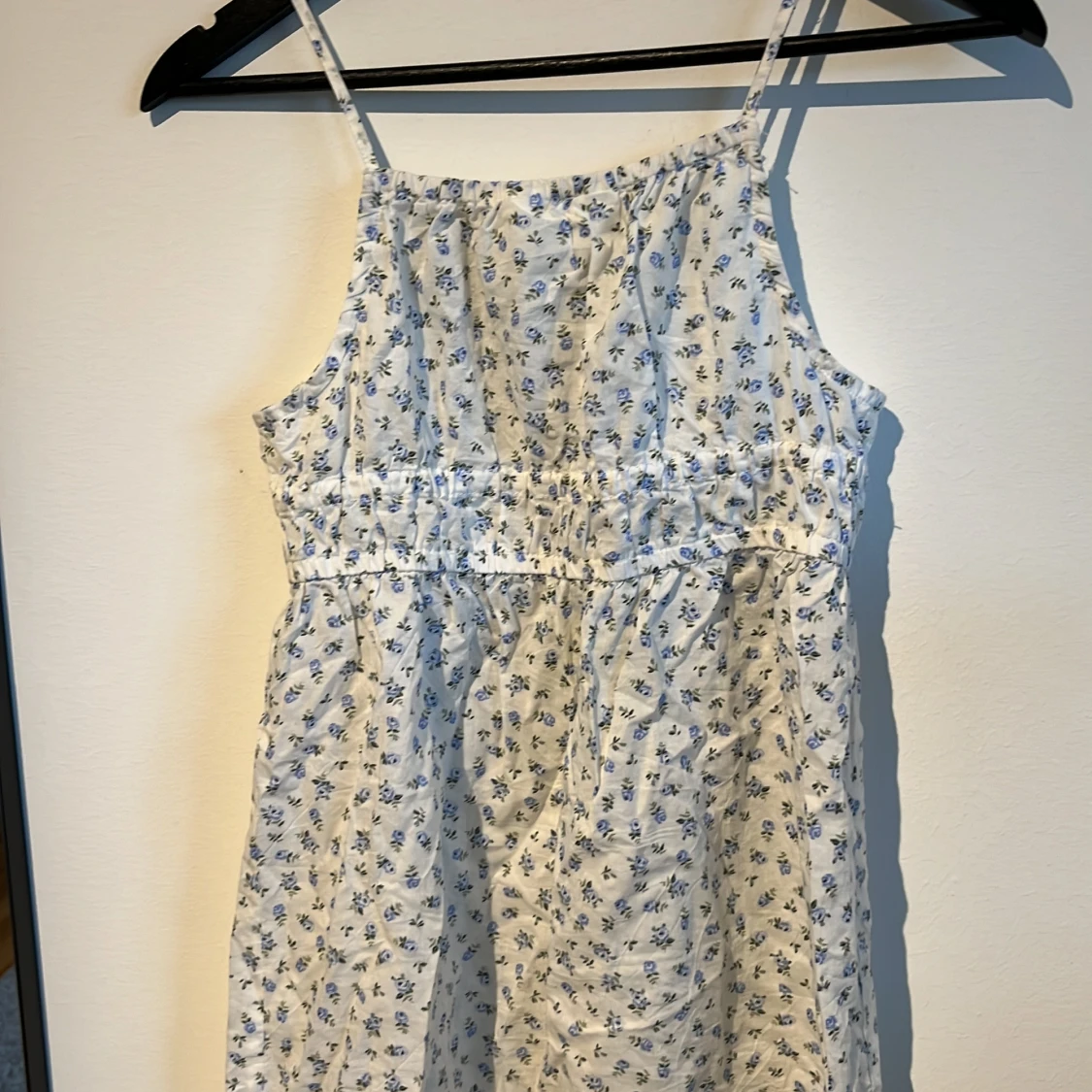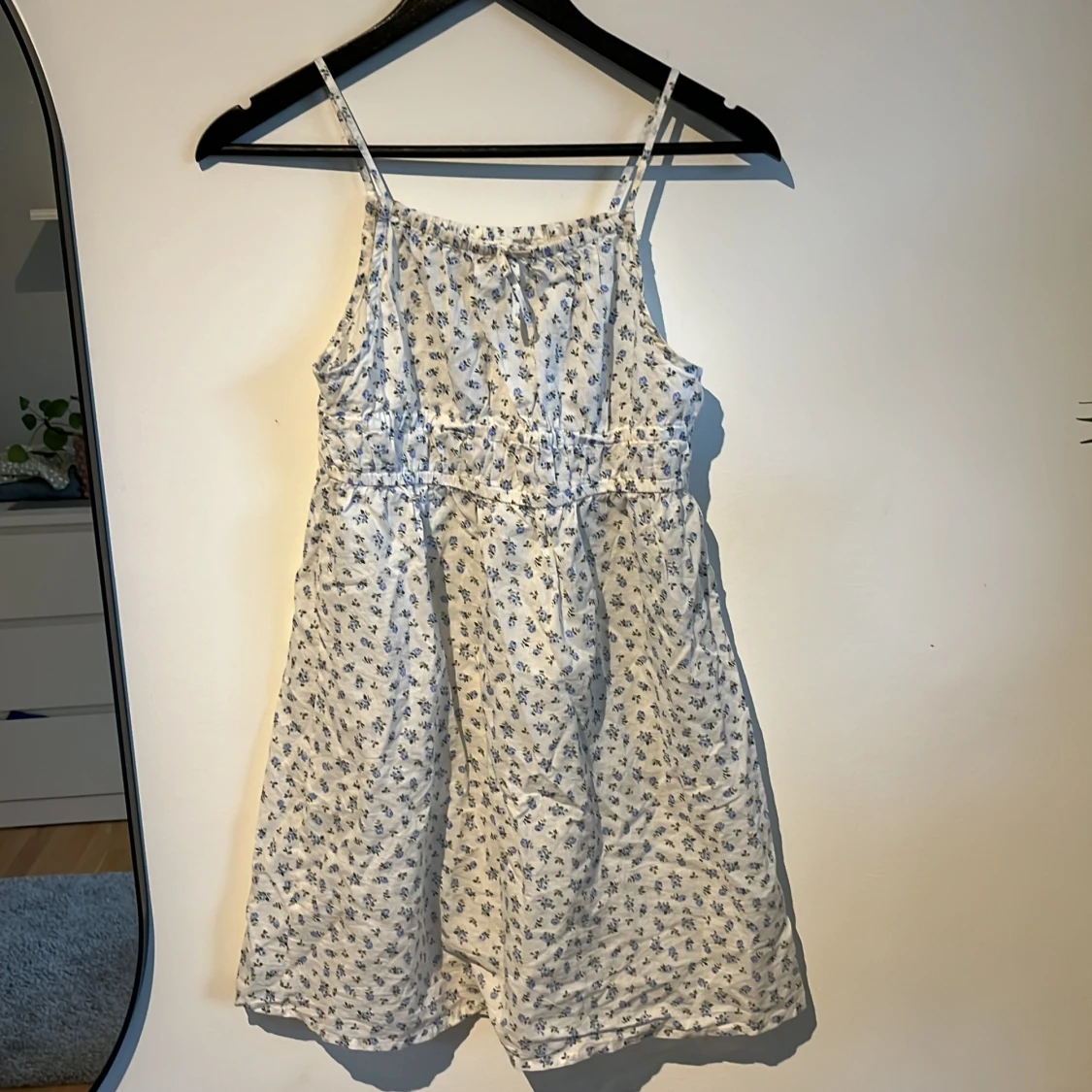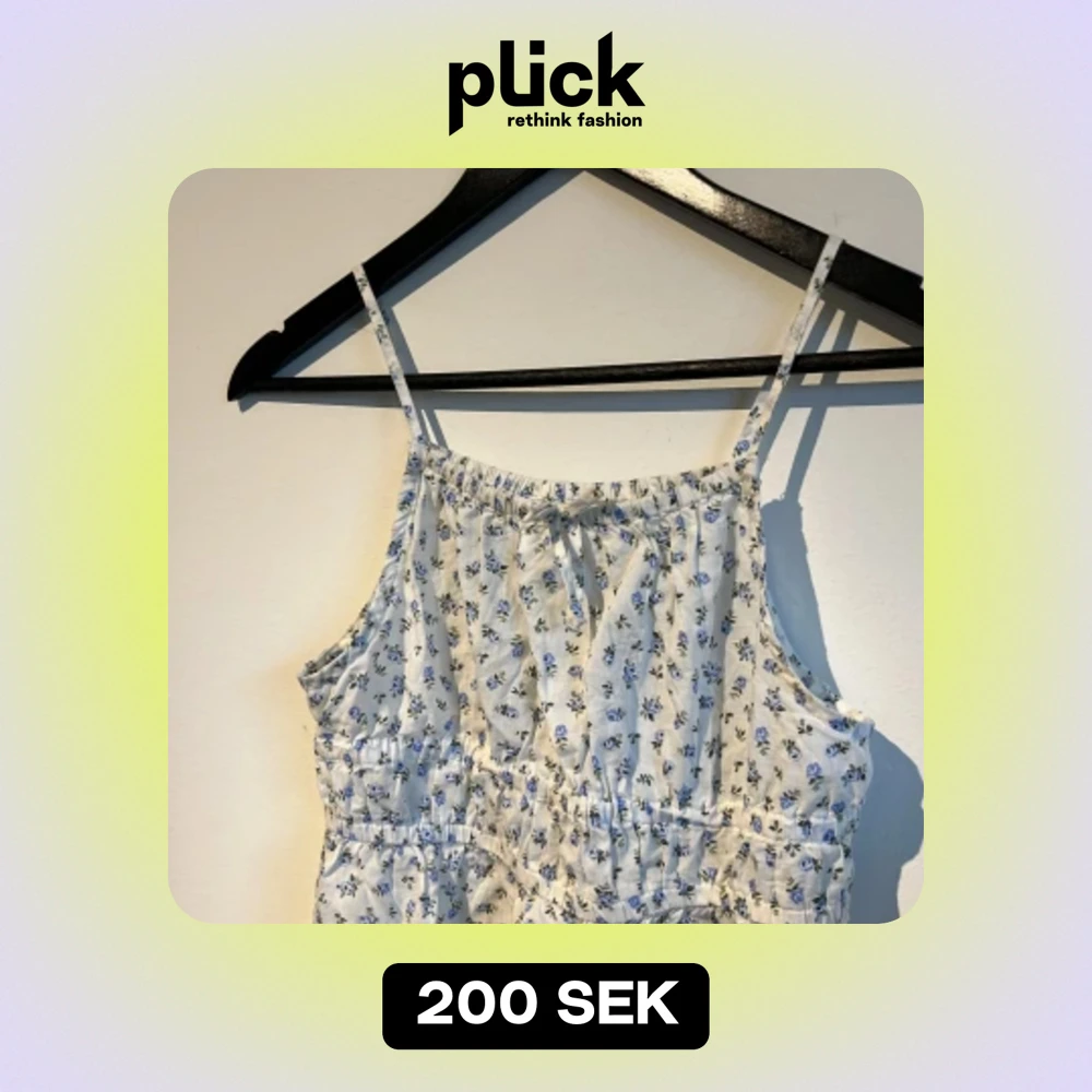 Säljer en fin somrig klänning med så blommor på. Använd ett fåtal gånger för jag tycker inte att jag passar i de . Har också växt ut den så tänker att det blir bättre att sälja den. Inga fläckar eller hål. Gott skick!☀️🪻