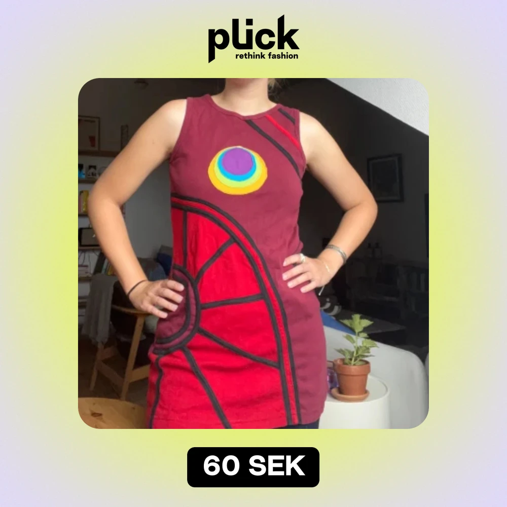 Fin mönstrad klänning köpt second hand i Köpenhamn. Okänt märke, men troligtvis franskt. Står M/L men skulle säga att den är mer en M. Kort i modellen. Har en ficka på ena sidan.