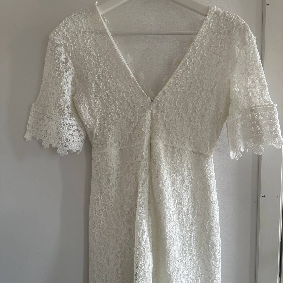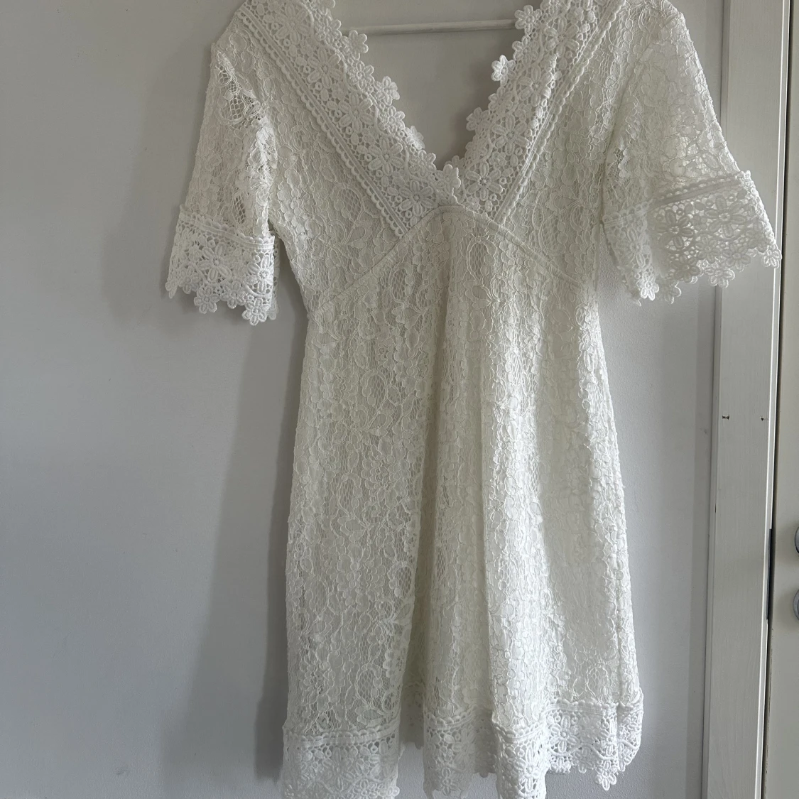 Vit sommarklänning i spets, finns en innerklänning på insidan🤍