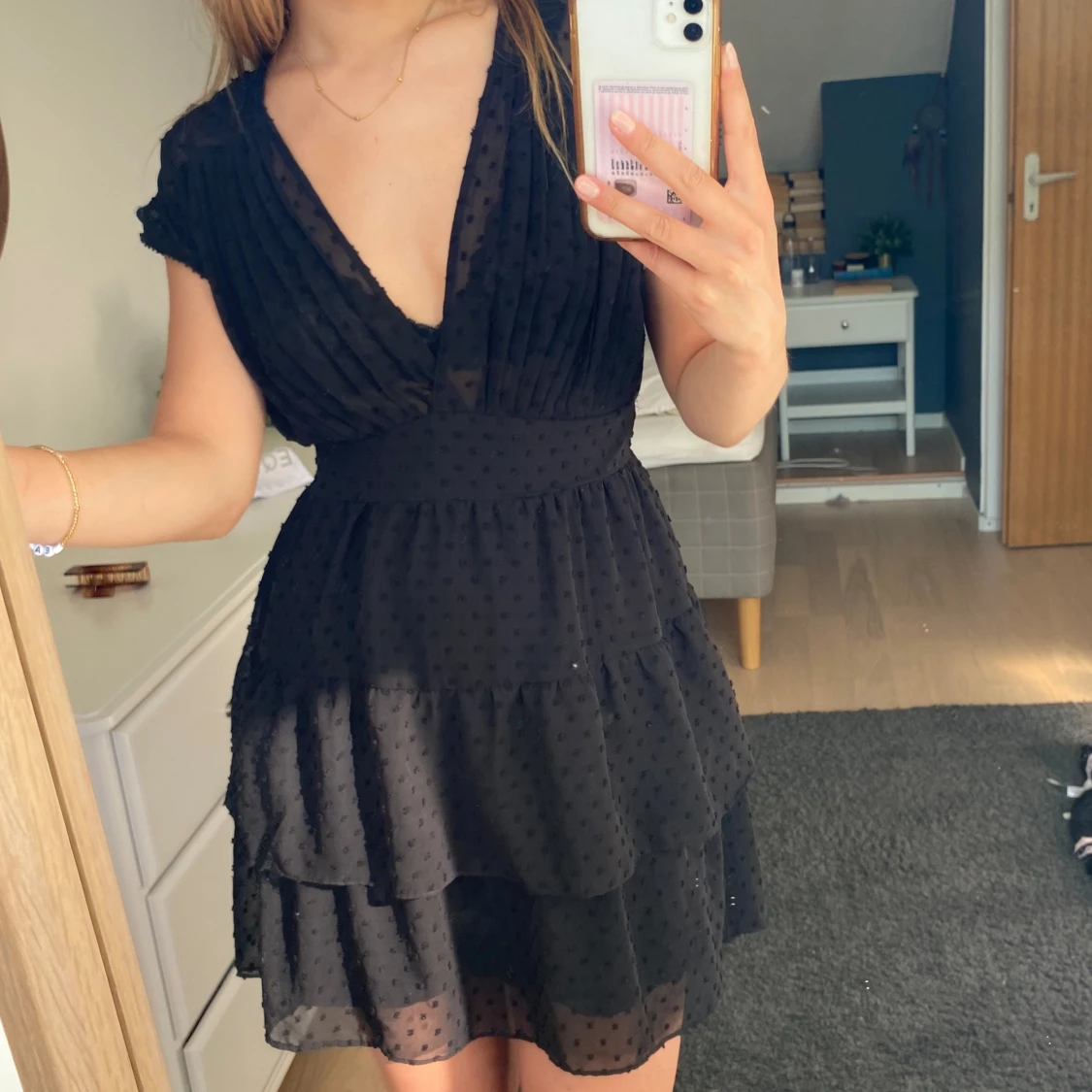 Supersöt klänning med volangkjol, använd en gång💓 obs överdelen är i mesh så kan behövas något under🫶🏻