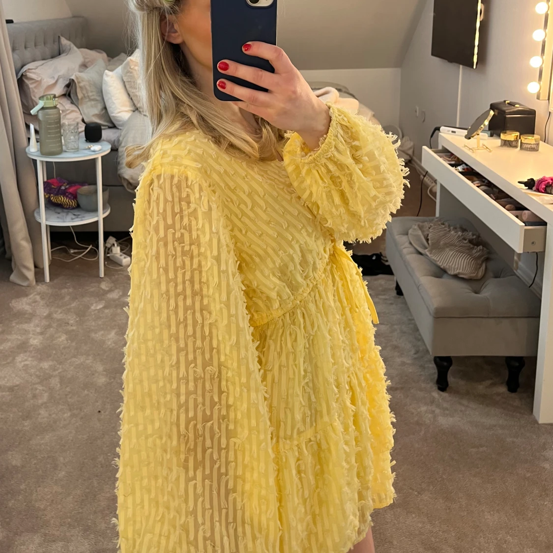 Såå fin gul klänning!! Perfekt nu till vår/sommar💛Endast använd 1 gång💛 storlek 32, men passar mig som vanligtvis bär 34 eller 36💛