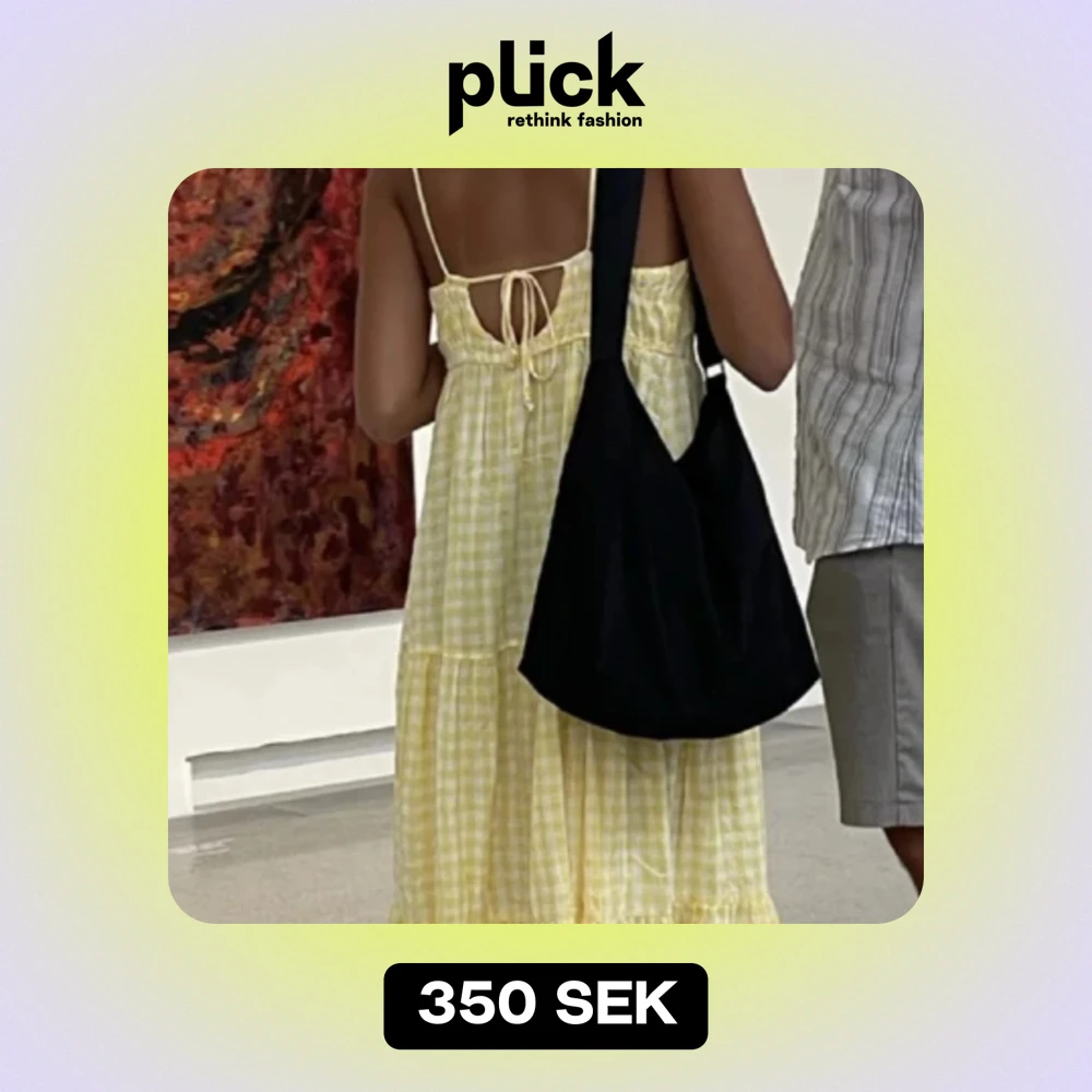 Somrig klänning, rutig gul med volanger. Helkroppslång, otroligt drömmig 💕💕 Perfekt till semester, strand, midsommar ✨🥂🦞Väldigt european summer Storlek XS, justerbara band och resor i midja, passar även S
