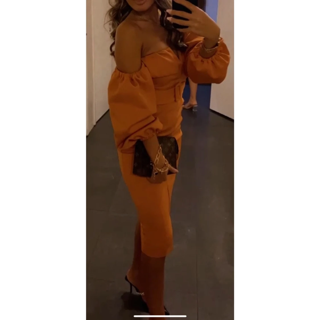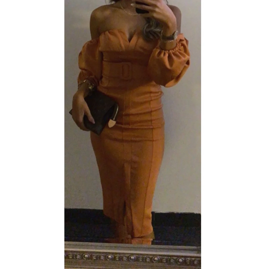Säljer min snygga & eleganta festklänning🧡🤎 Så fin färg 😍 Endast använd i några timmar! 🌻 Storlek 32/34