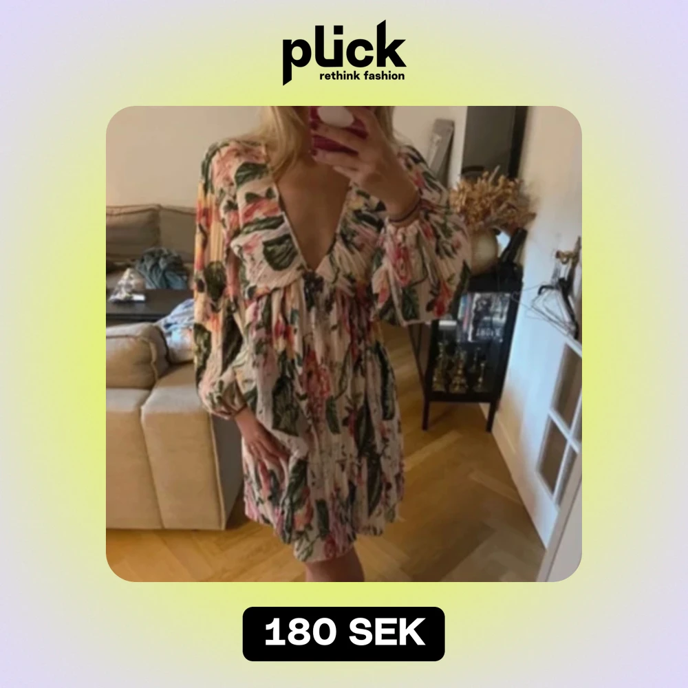 Blommig klänning - Populär blommig klänning från Zara i mycket fint skick. Storlek S. Säljes för 1000kr🦢Möts upp i Stockholm!  (Bilden är lånad från Plick, hör av dig om det är din🙏)