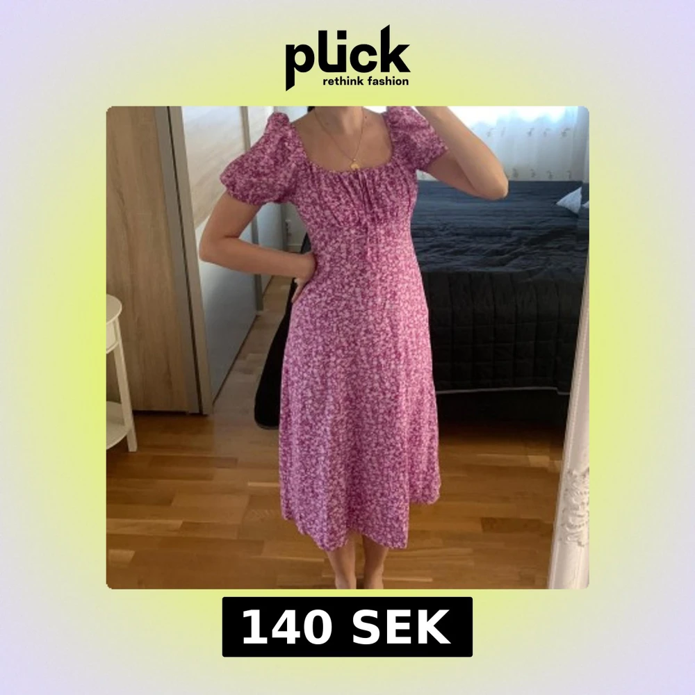 Säljer en lila långklänning med små vita blommor, puffiga kortärmar och snygg slits framtill. Klänningen har en söt rynkning vid bysten och sitter figurnära upptill med lite vidare kjol. Perfekt för dig som gillar romantisk och feminin stil. Helt ny! Passar både xs och s