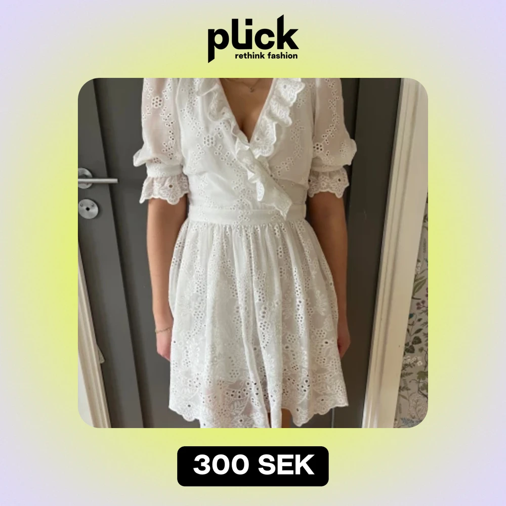 Vit klänning med volang, perfekt till studenten och sommarn. Endast använd vid två tillfällen, perfekt skick!💕💕