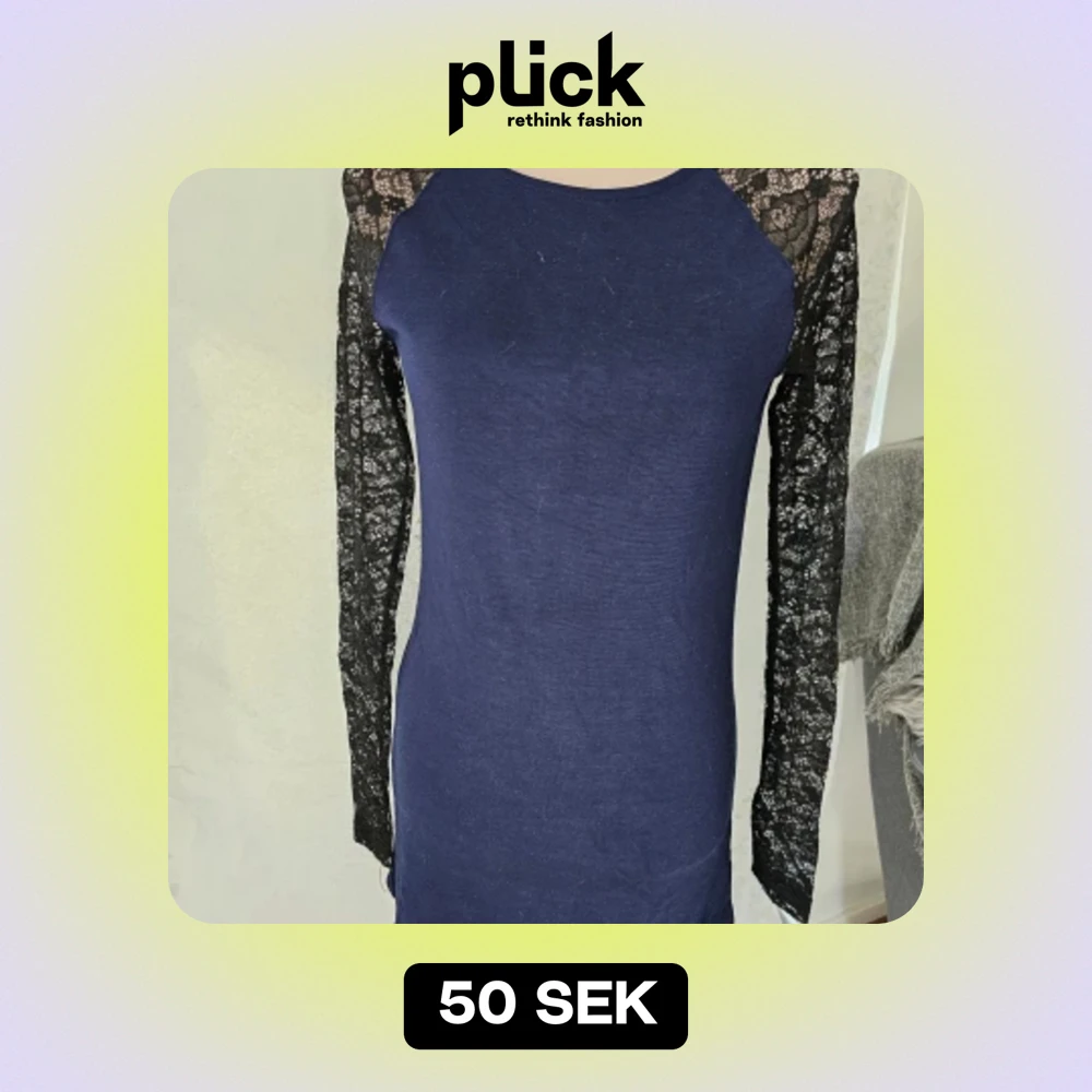 En elegant mörkblå klänning från H&M Divided med spetsdetaljer på ärmarna och axlarna. Klänningen har en dragkedja på baksidan och är långärmad.