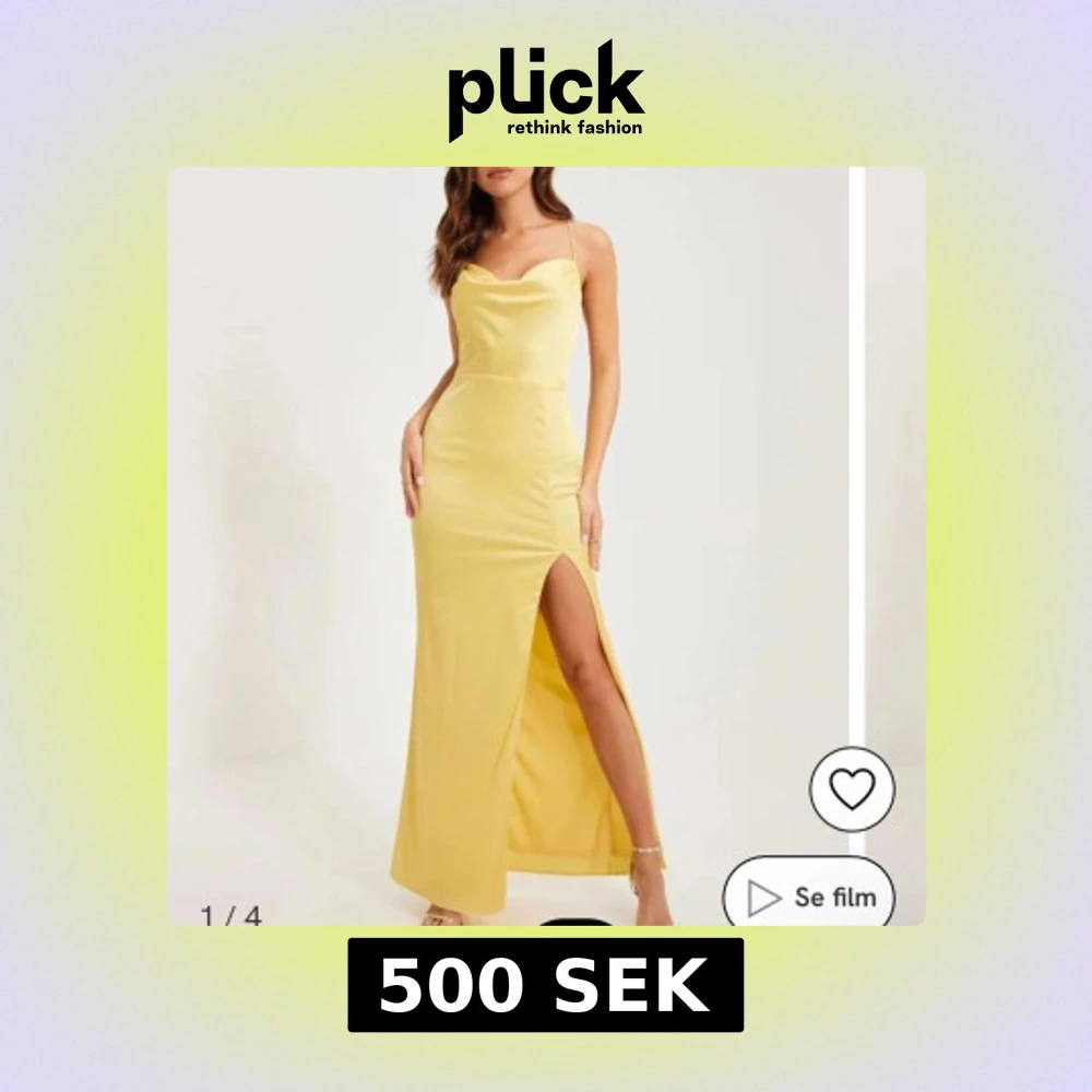 SĂ€ljer en ljusgul lĂ„ngklĂ€nning i satin frĂ„n Nelly. KlĂ€nningen har tunna axelband som korsas i ryggen och en snygg draperad urringning framtill. Perfekt för balđ