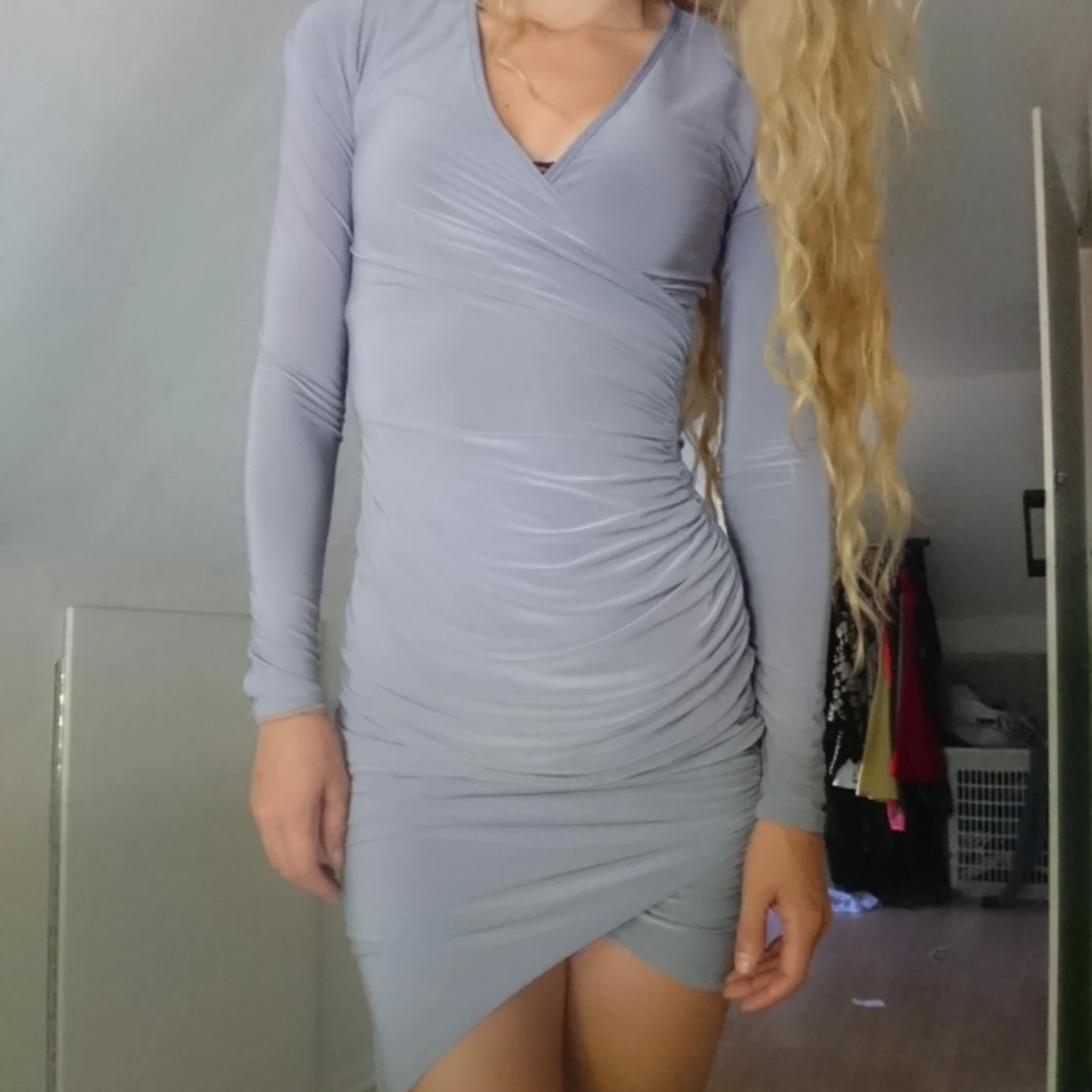 Best looking foil dress by Rebecca Stella with wrinkle effect in front, to accentuate your curves. In addition, super-sleek and stretchy, so perfect for outdoor night đ