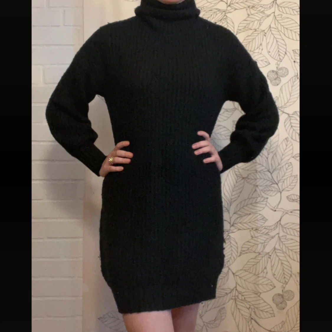 Svart stickad klänning med polokrage i storlek S från even&odd. Lite nopprig på vissa ställen men annars fint skick🌸 Kolla gärna in mina andra artiklar också för lite bundle-rabatt😊