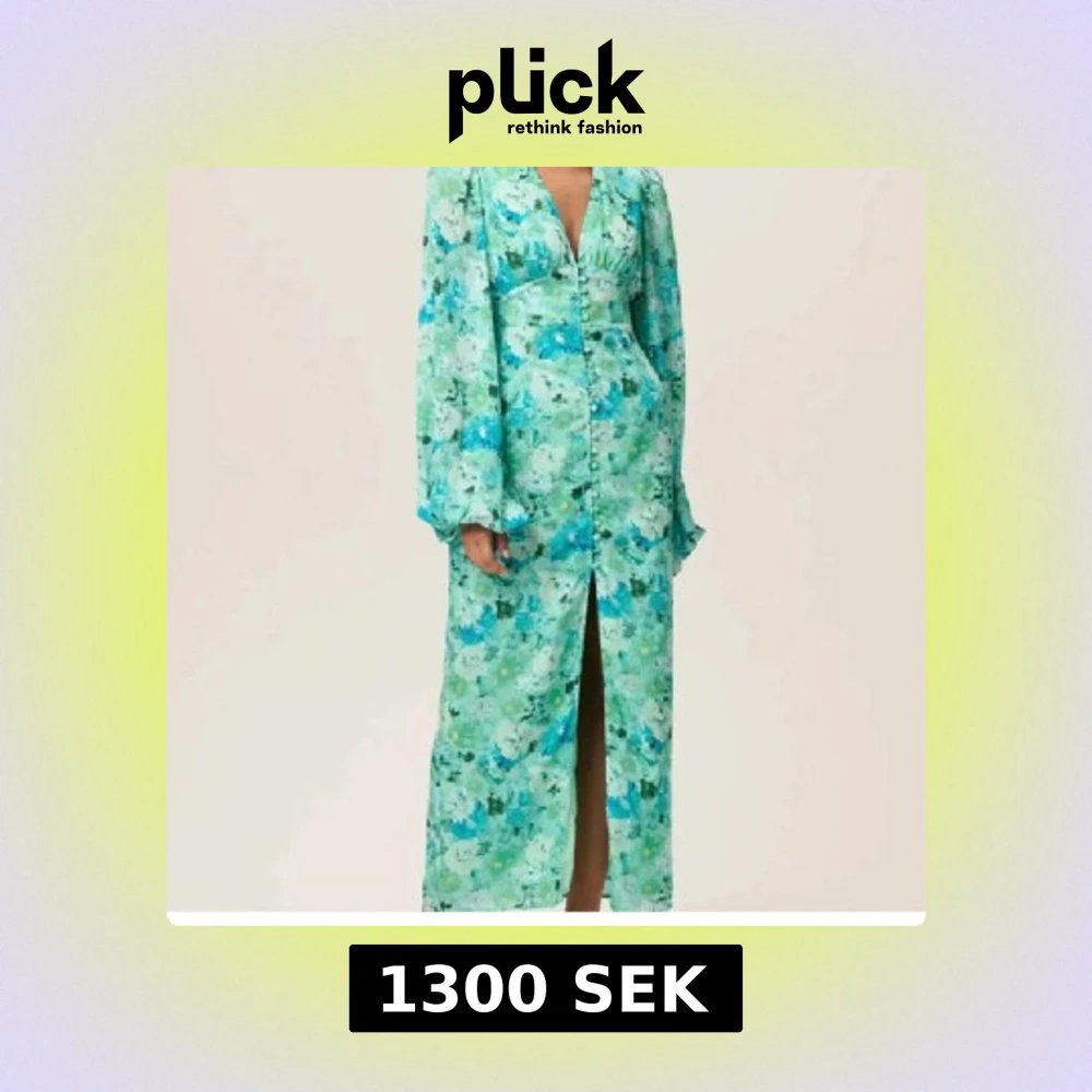 Snygg grön långklänning från adoore med blommigt mönster och v-ringad design. Klänningen har långa ärmar och en slits framtill som ger en elegant touch. Perfekt för vår och sommar!