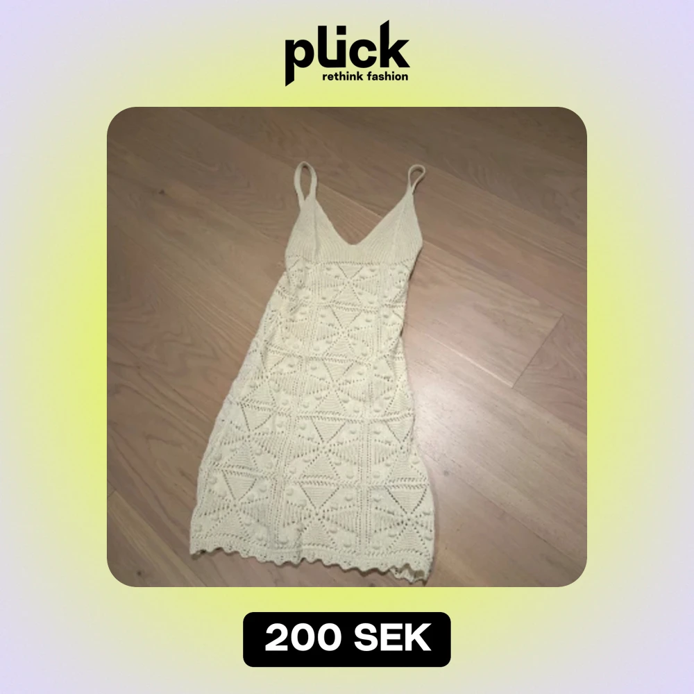 Perfekt stickade strand klänning i storlek S funkar för någon med storlek M också , super fint mönster på nästan helt ny bara använd 1 gång banden är lite långa men klänningen är lagom lång funkar ändå på mig som är 170.