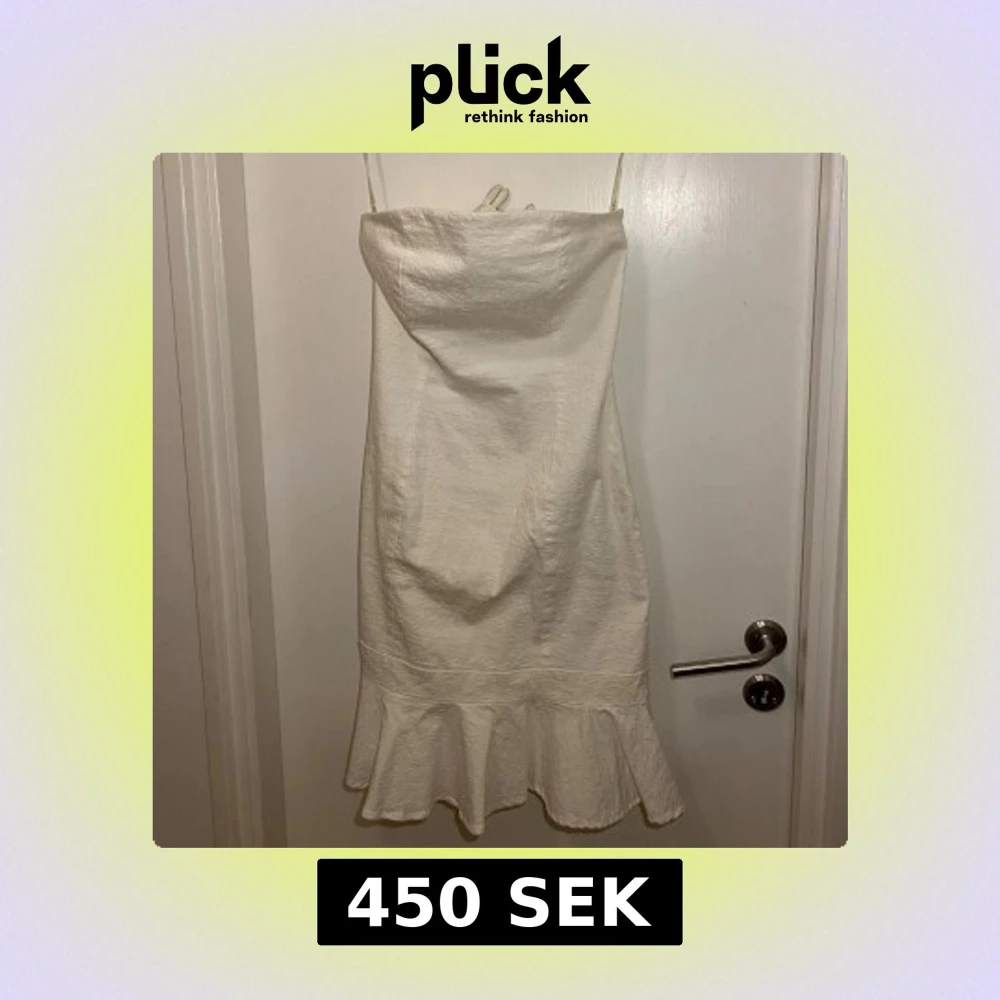 Cremevit tubklänning från Guess med volangdetalj vid fållen, perfekt för sommaren eller studenten!