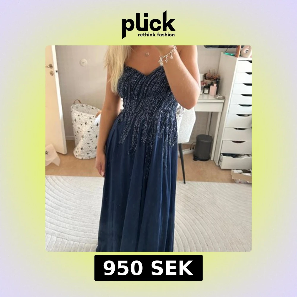 Marinblå balklänning som är helt ny. Banden går att justera och det är dragkedja i ryggen. Saknar banden i ryggen som man trär igenom, går att köpa något blått silkesband. Den har en slits och inlägg i bysten. Jag är 169cm och sen går ned till marken. Passar storlek Xs/S. Skriv för fler bilder🩷🩷