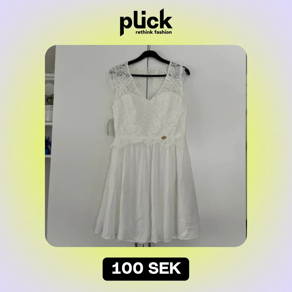 Vit studentklänning från Bubbleroom. Spets och öppen i ryggen. Aldrig använd och har lapparna kvar