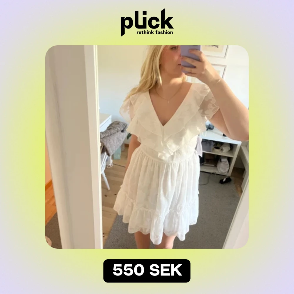 studentklänning från bubbleroom! Ny med prislapp kvar! Superfin med lite mönster på! Volang upptill och v ringning!🥰💞Köpte för ca 800kr