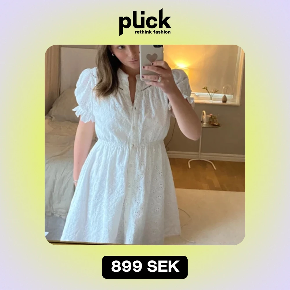 Nyskick, beställde tyvärr fel storlek och gick inte att returnera, nypris ca 3000, 295 USD. Storlek 2 motsvarande medium. Perfekta studentklänningen! Modellen heter ”BA&SH Beky Eyelet Short Sleeve Button Front Mini Dress” som är helt slutsåld!