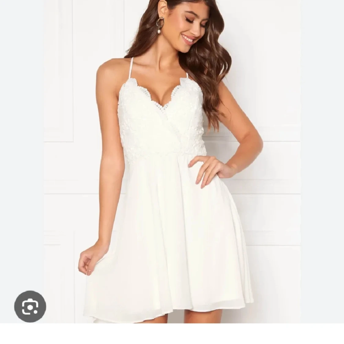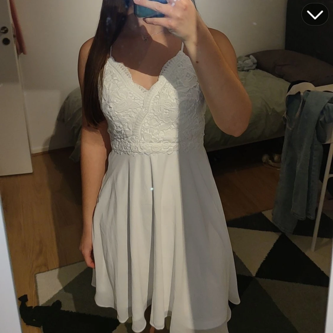 Säljer en söt vit kortklänning med spetsdetaljer upptill och smala korsade axelband i ryggen. Klänningen har v-ringning och en lätt utsvängd kjol i tunt material. Perfekt för student eller bara en fin sommardag 🥰👩🏽🎓 ska tilläggas att jag har 2 exakt likadana ifall man vill ha 2 st, ex om ena blir smutsig under dagen eller liknande under studenten. Hör av dig ifall du är intresserad av båda 2 isåfall 🤗