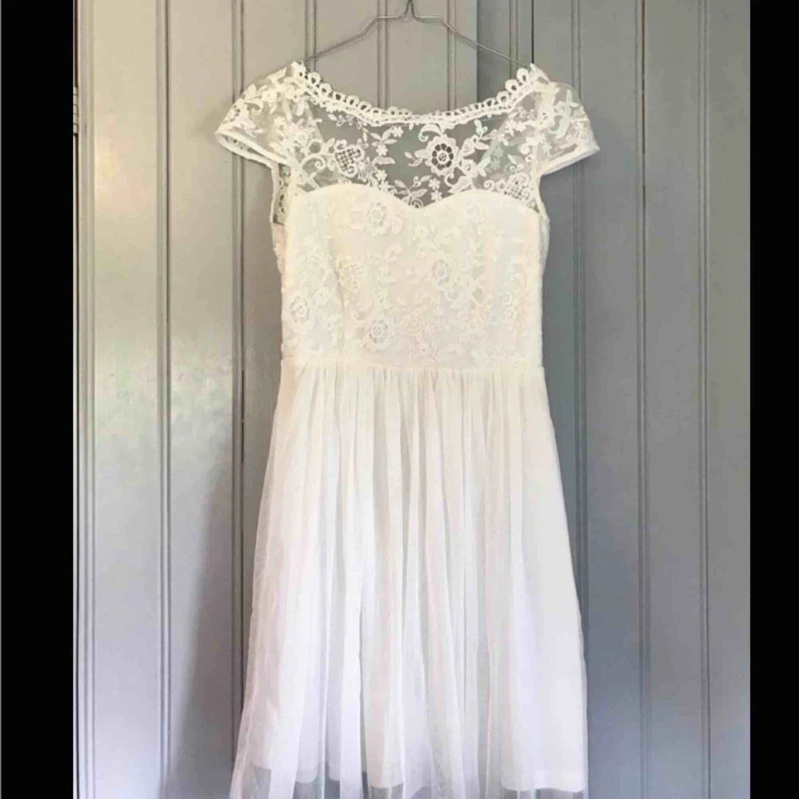 Vit klänning med spets upptill från märket Vila. Perfekt till student, grundent, konfirmation osv;) Använd 1gång. (Originalpris- 600kr)