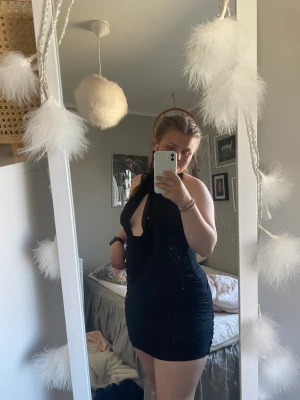 En svart otroligt snygg kort klänning. Älskar verkligen denna, men kommer tyvärr inte till användning:( Dragkedja i ryggen och ett band som knyts runt nacken.